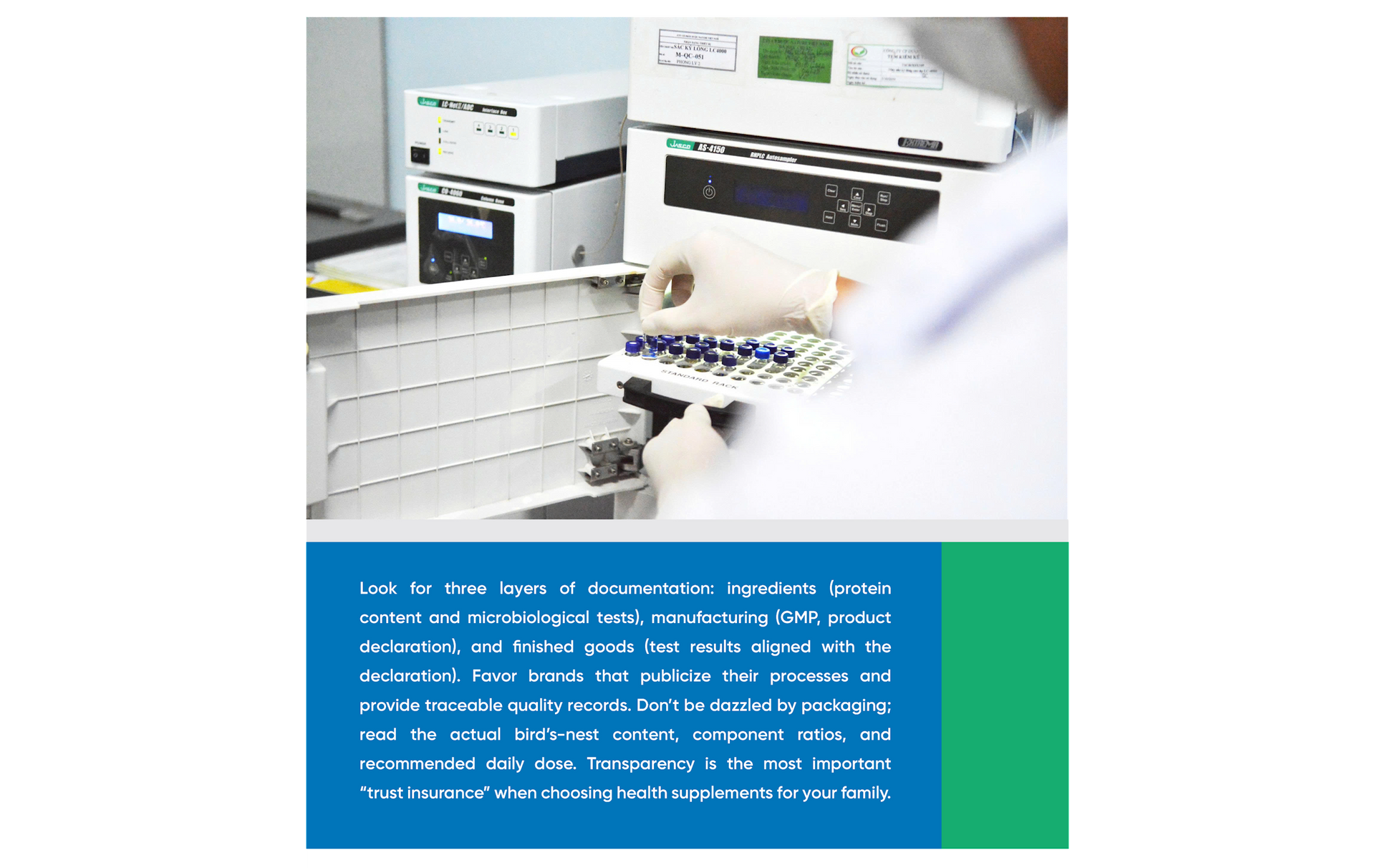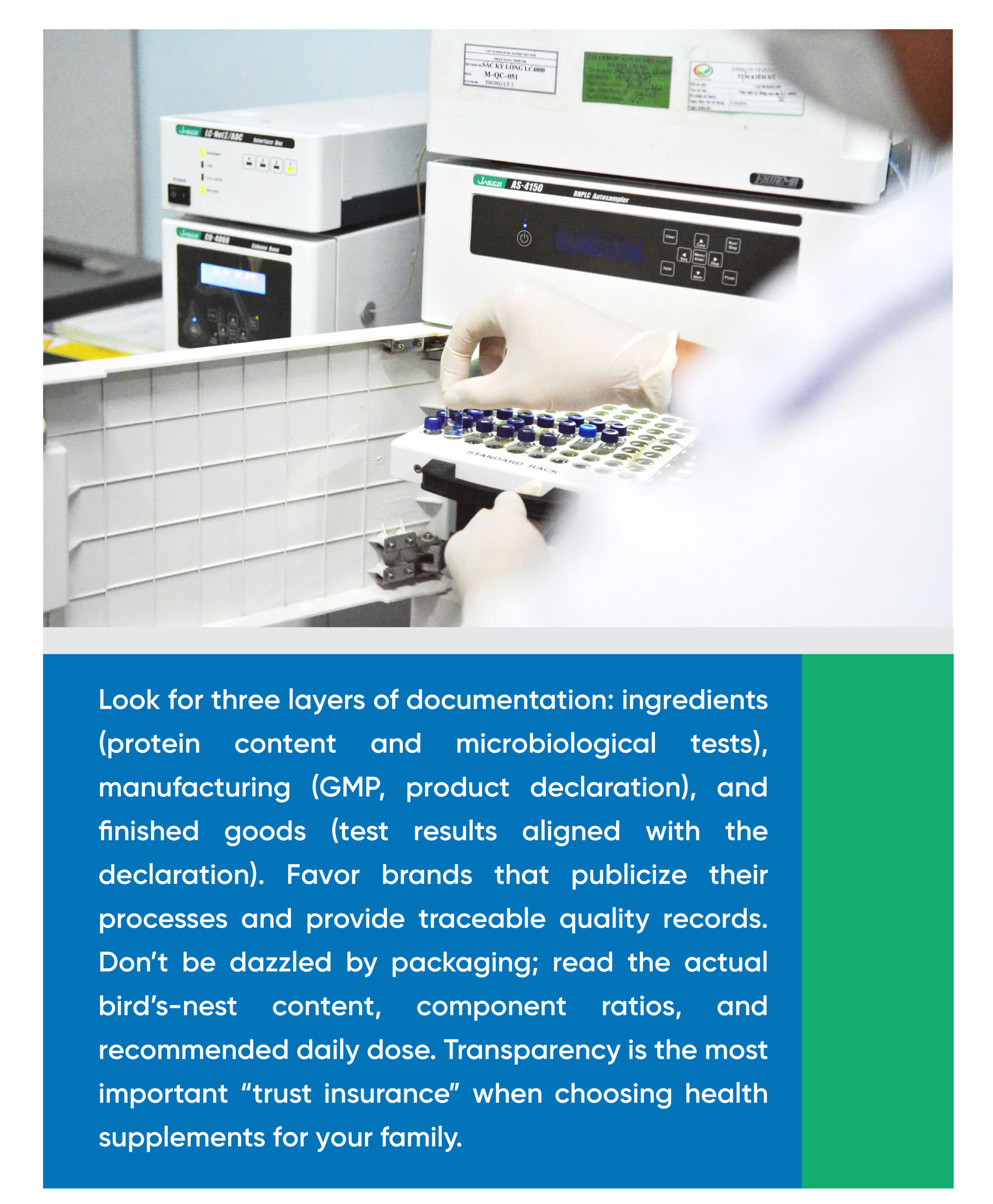 Bird’s nest is celebrated as “white gold,” yet traditional usage still carries risks if processing and storage are not done properly. Metal utensils can react with amino acids at high temperatures; steaming time must be tightly controlled (about 20-30 minutes at 80-100°C); after steaming, the product needs to be refrigerated at 2-8°C and has a short shelf life. With raw nests, practical testing shows a risk of harmful microorganisms if handling is not standardized. These requirements make many families reluctant to use it regularly, even though they understand bird’s nest’s nutritional value.