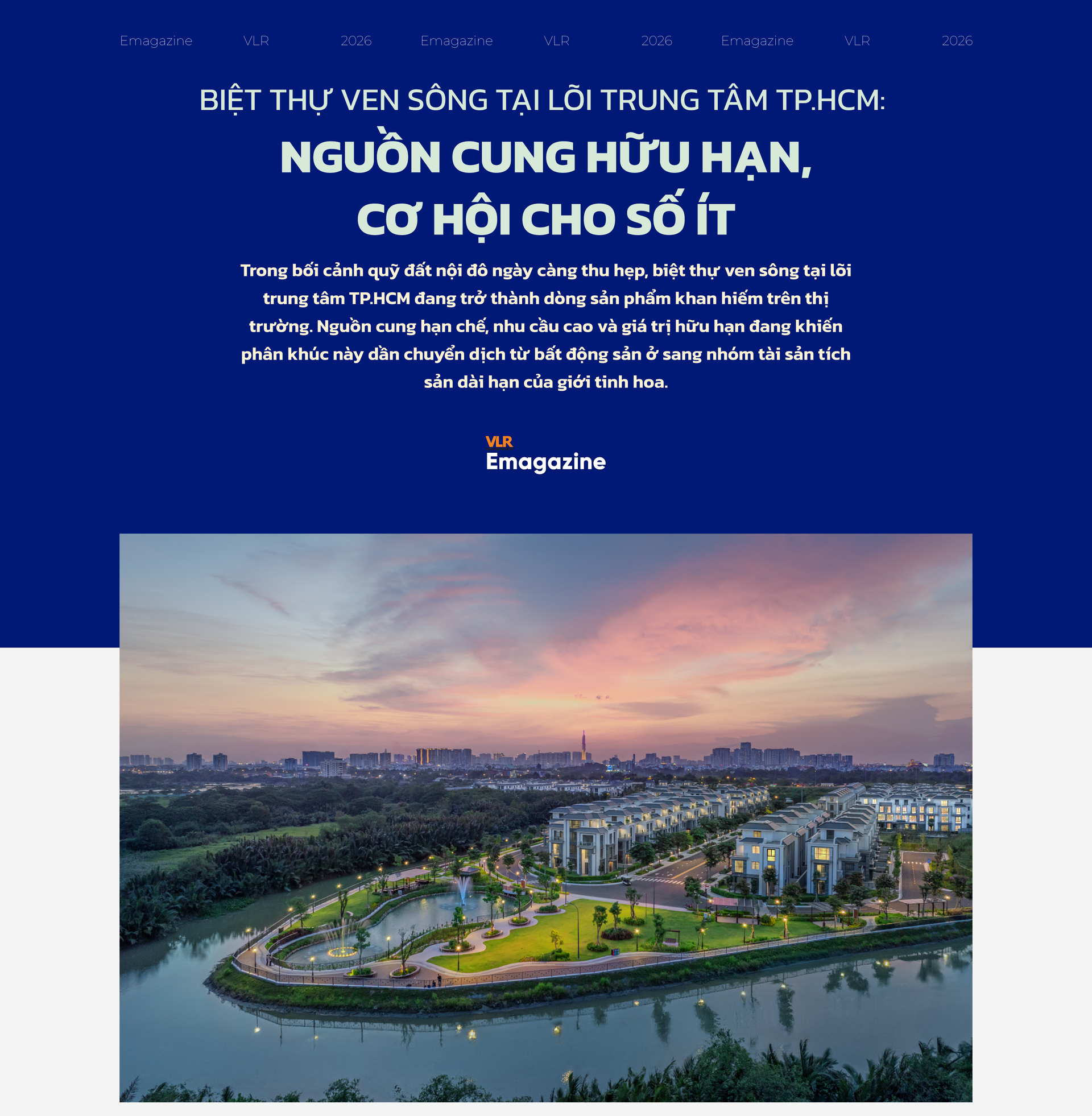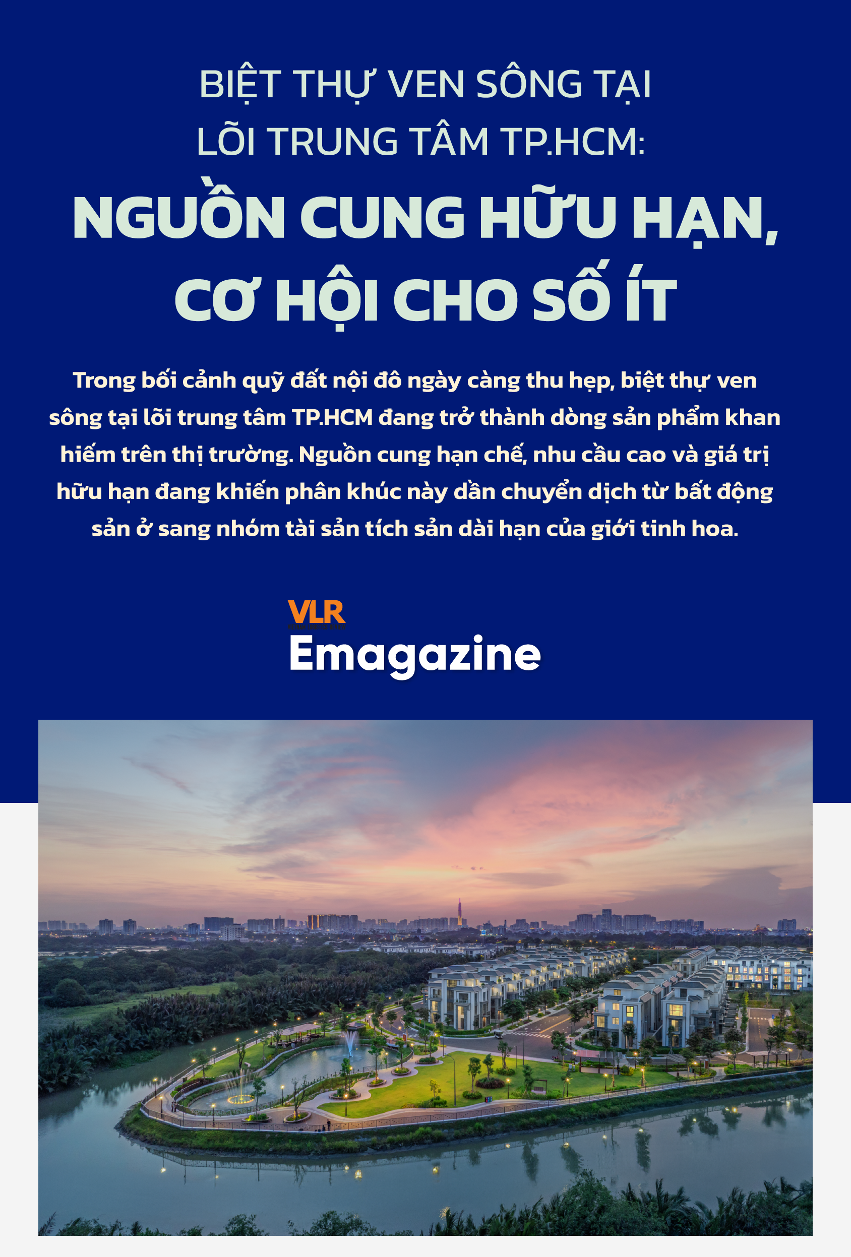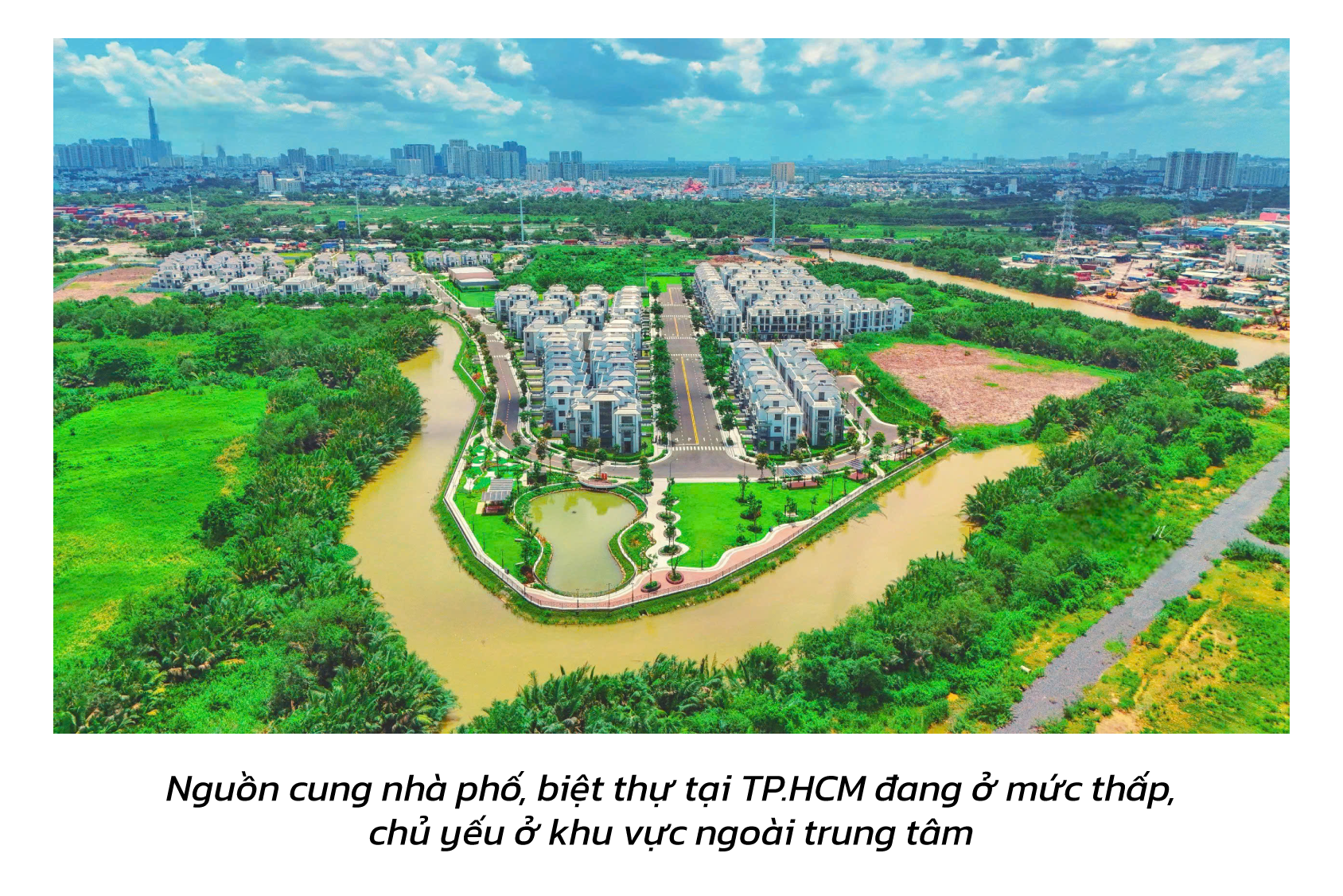 Song song đó, định hướng phát triển nhà ở giai đoạn 2021–2030 và kế hoạch 2026–2030 của TP.HCM tiếp tục ưu tiên mô hình đô thị nén với nhà ở cao tầng, đồng thời tôn trọng cấu trúc tự nhiên là hệ thống sông, kênh, rạch và gắn với hệ thống công viên cây xanh sử dụng công cộng, tạo lập mạng lưới và hành lang thoát nước, quản lý ngập lụt trong đô thị. Cách tiếp cận này giúp phát triển đô thị bền vững, nhưng cũng đồng nghĩa với việc các sản phẩm biệt thự ven sông tại lõi đô thị không chỉ khan hiếm ở hiện tại mà còn rất khó được bổ sung thêm trong tương lai.