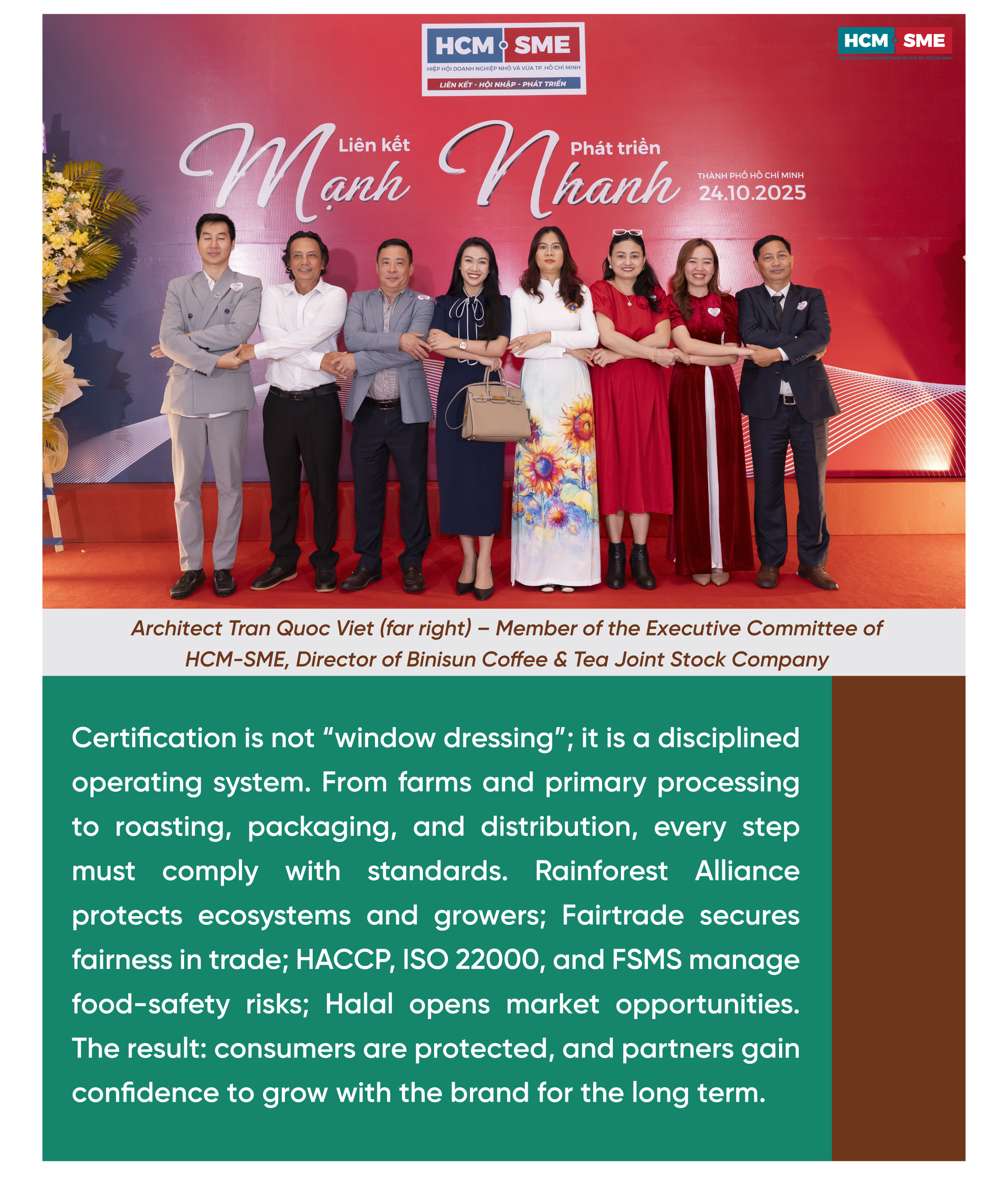 For consumers, Binisun is a choice that is reassuring, worth trying, and worth staying with. For retailers and HORECA partners, it is a standards-based anchor for expanding portfolios without compromising reputation. And for farmers, the brand helps build a fairer, more sustainable playing field. When every coffee bean carries a clear story and certification, the journey “from the Central Highlands to global markets” is no longer a slogan but a measurable, verifiable roadmap for long-term companionship.