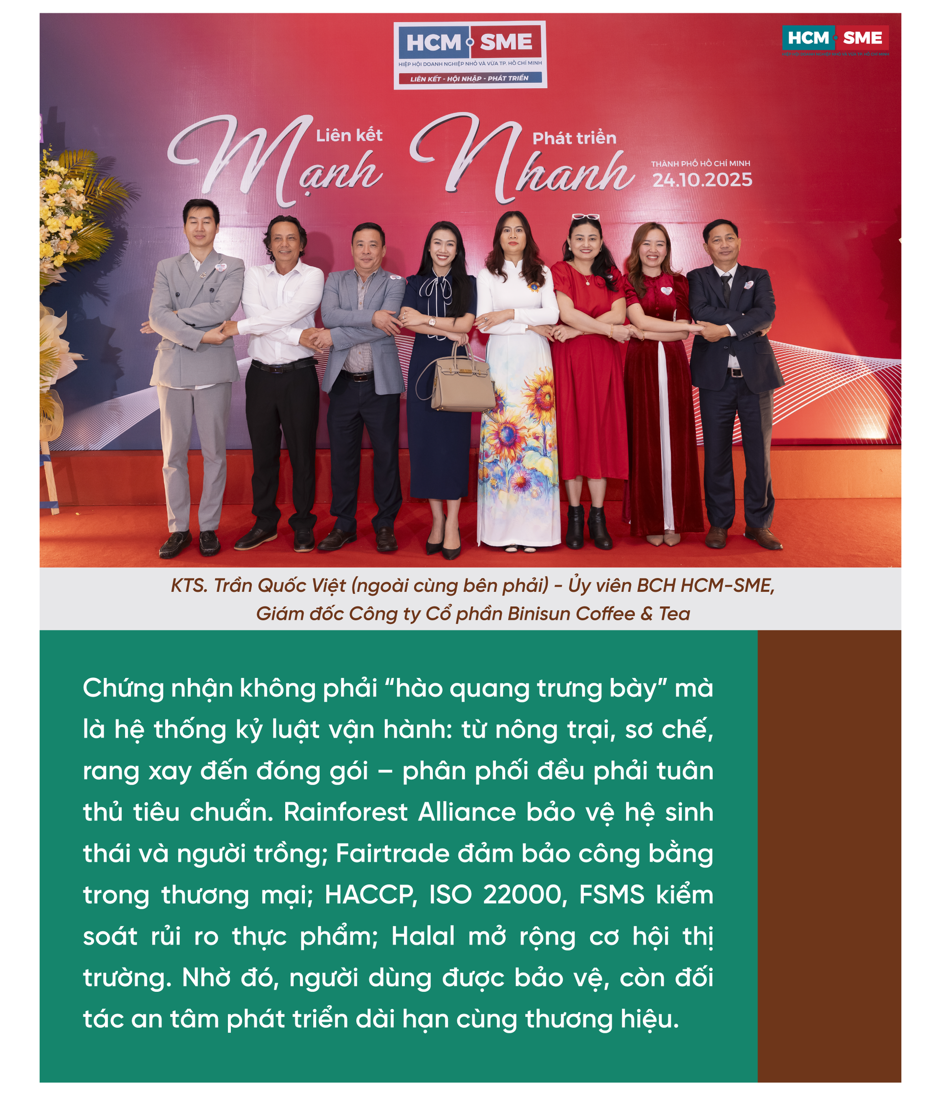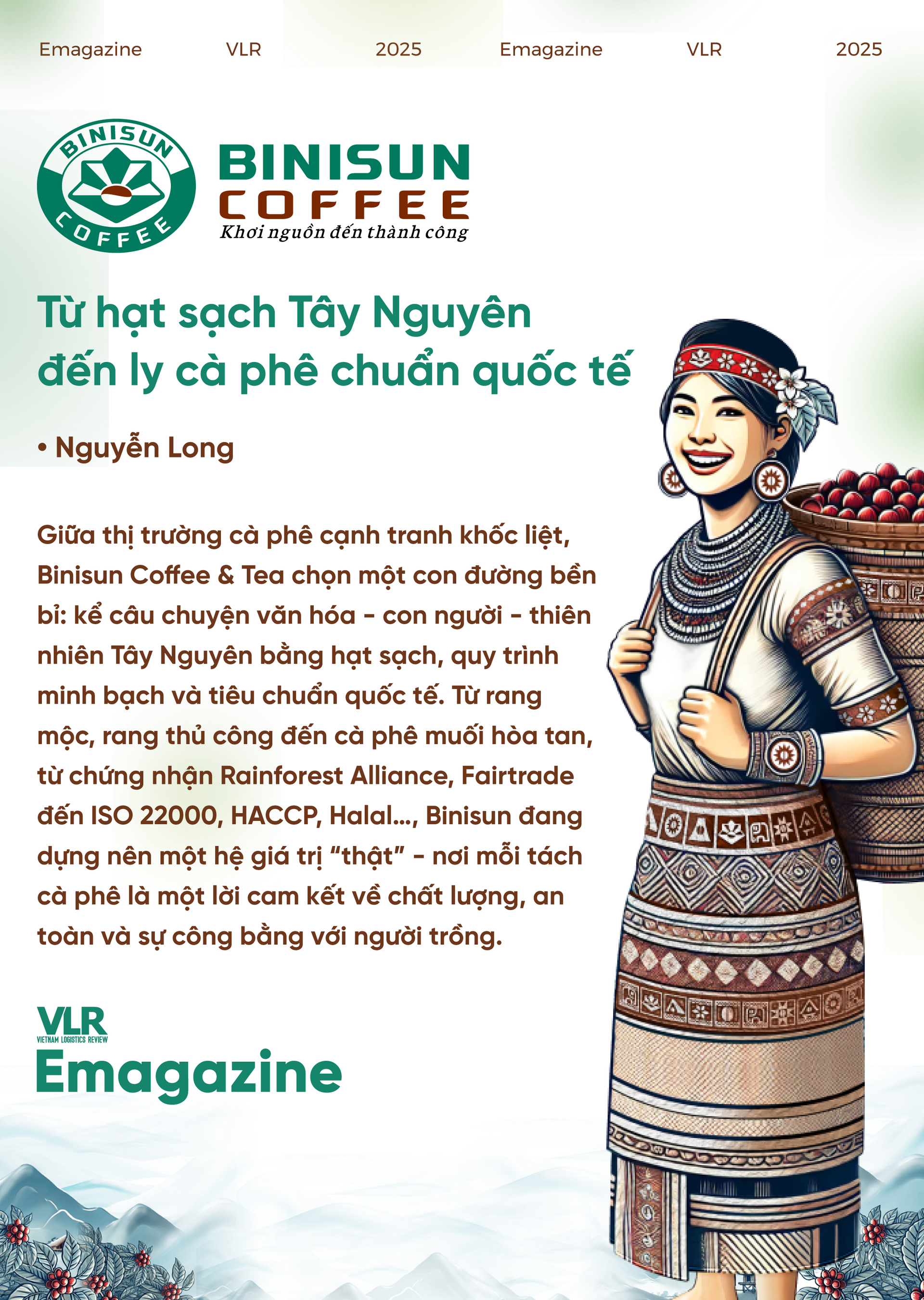 Một trong những khác biệt đáng kể của Binisun nằm ở hệ chứng nhận đa tầng: Rainforest Alliance về nông nghiệp bền vững; Fairtrade về thương mại công bằng; HACCP về kiểm soát mối nguy an toàn thực phẩm; Halal đáp ứng nhu cầu của người tiêu dùng Hồi giáo; cùng FSMS/ISO 22000:2018 và chứng nhận VCA cho hệ thống quản lý an toàn thực phẩm theo chuẩn quốc tế. Bộ “hộ chiếu” chứng nhận này không chỉ là bằng chứng năng lực vận hành, mà còn là “giấy thông hành” để thương hiệu mở rộng ra hơn 20 quốc gia - đưa hương vị Tây Nguyên đi xa nhưng không đánh mất căn cước.