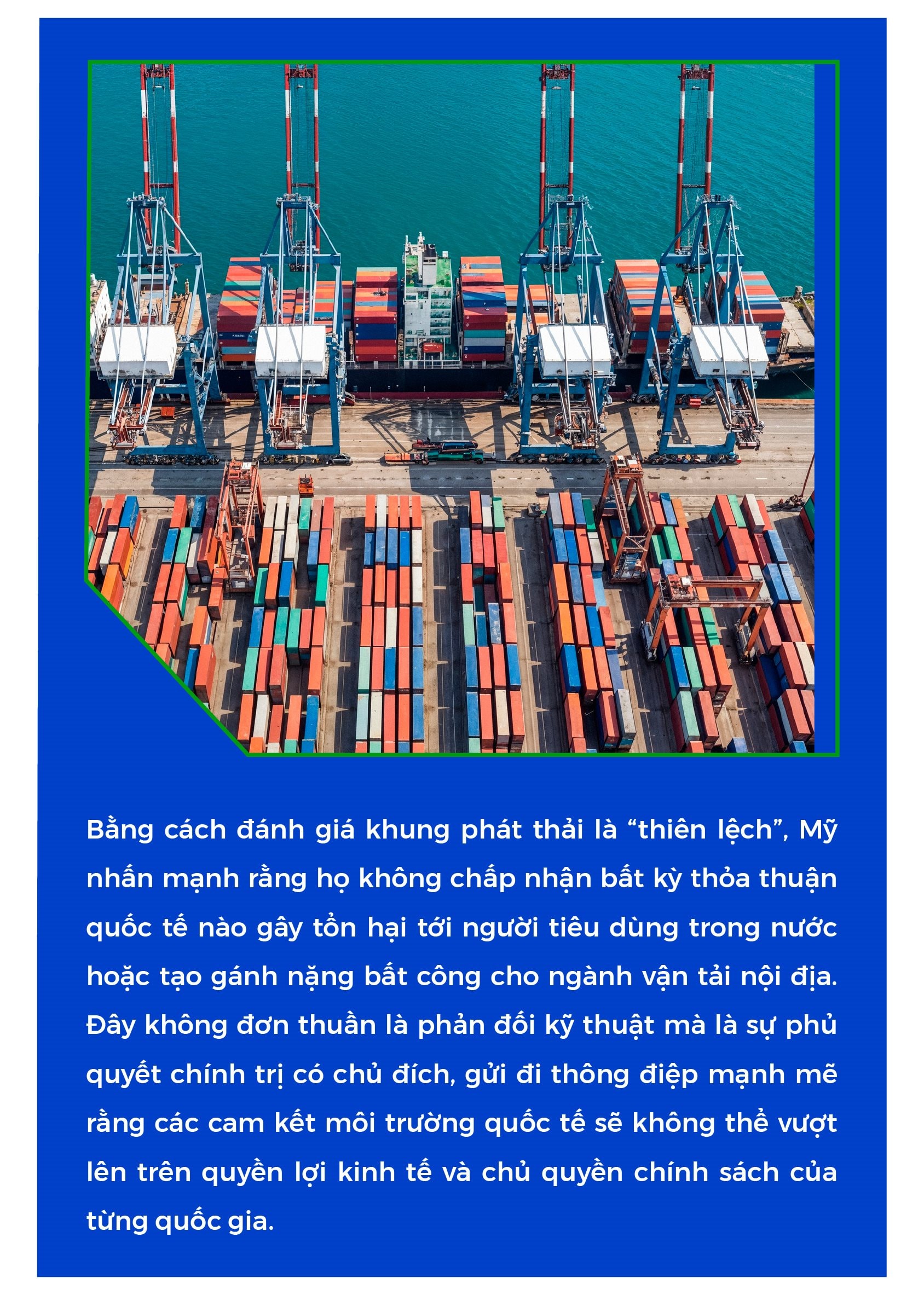 Bên dưới bề nổi môi trường, khung phát thải ròng bằng 0 đang dần trở thành công cụ cạnh tranh địa chính trị mới. Mỹ ủng hộ việc sử dụng LNG và nhiên liệu sinh học – những lựa chọn mà họ có lợi thế sản xuất và công nghệ. Trong khi đó, châu Âu lại nghiêng về các giải pháp không carbon như amoniac và hydro, vốn đòi hỏi chi phí đầu tư khổng lồ và phụ thuộc nhiều vào công nghệ tái tạo.