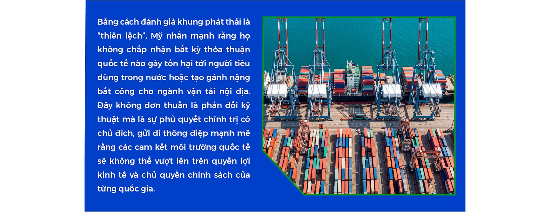 Việc chính quyền Mỹ dưới thời Donald Trump bác bỏ Khung phát thải ròng bằng 0 (Net-Zero Emissions Framework) do IMO đề xuất đã ngay lập tức tạo ra làn sóng lo ngại trong toàn ngành vận tải biển, đặc biệt khi lý do được đưa ra là kế hoạch này sẽ tạo ra “một loại thuế ẩn lên người tiêu dùng Mỹ”. Khung phát thải của IMO vốn hướng tới việc giảm dần và tiến tới triệt tiêu lượng khí nhà kính phát ra từ vận tải biển – một lĩnh vực đóng góp tới gần 3% tổng lượng phát thải toàn cầu. Tuy nhiên, theo phía Mỹ, việc bắt buộc chuyển đổi sang các loại nhiên liệu mới đắt đỏ và chưa phổ biến trên quy mô toàn cầu như amoniac, hydro hay methanol sẽ gây thiệt hại nặng nề cho người dân Mỹ, đồng thời tạo lợi thế cho Trung Quốc – nơi kiểm soát phần lớn chuỗi cung ứng nhiên liệu xanh và đóng tàu thế hệ mới.