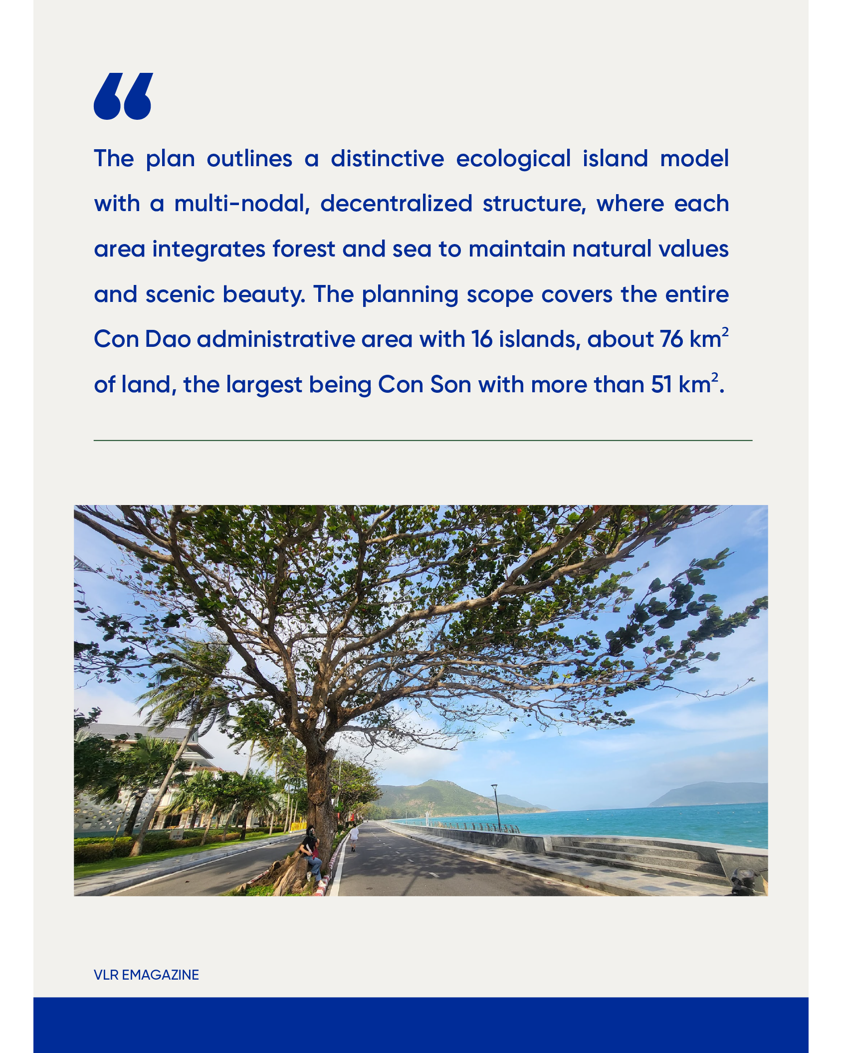 Under this plan, the conservation zones include the main island, small beaches, and several satellite islands under strict protection, while the development zones for tourism and urban resorts are concentrated in central Con Son, the historical prison relics, redeveloped residential areas, and new resorts.
