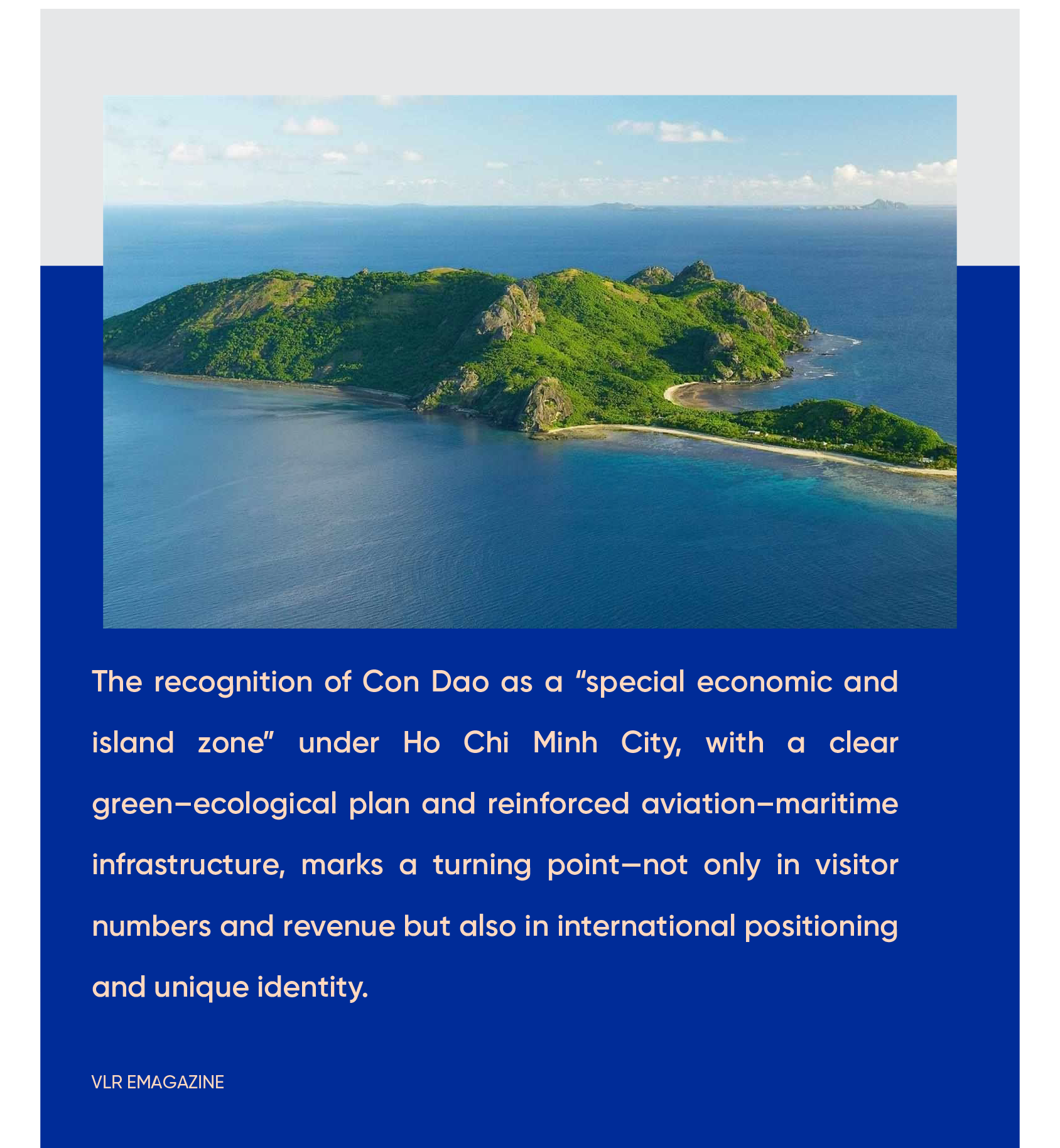 From a heroic island district with pristine nature, Con Dao has entered a new era as a special economic zone under Ho Chi Minh City. With a vision through 2045, it is laying the foundation to become an international eco-island tourism center. Green tourism development, heritage conservation, airport and seaport upgrades, and expanded international connections are the essential pillars. Once special policies, foreign investment incentives, and new administrative mechanisms are implemented synchronously, Con Dao will not only be a tourist destination but also a model of sustainable development—a place where urban expansion does not erase identity but reinforces it, where commerce, tourism, and culture converge to shape the international image of Ho Chi Minh City: global, distinctive, and green.