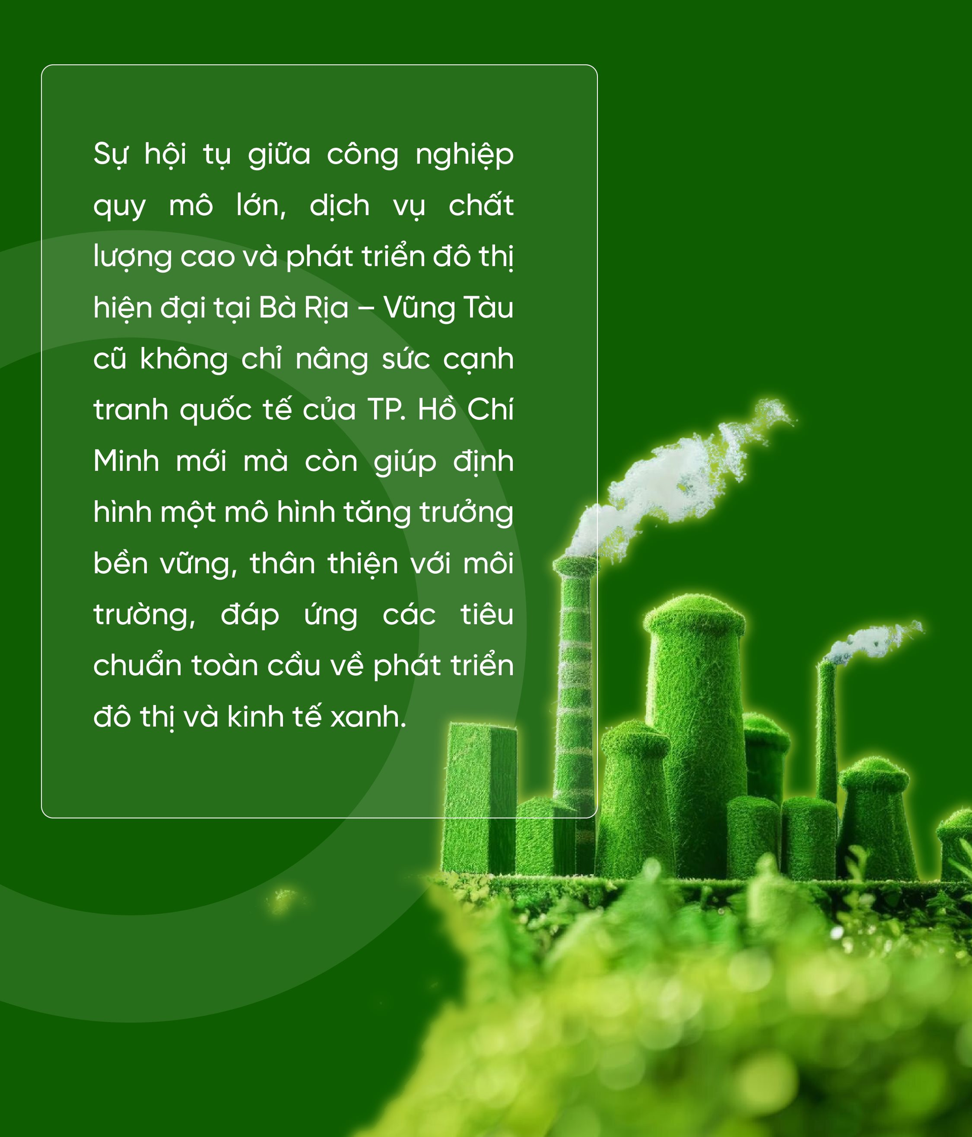 Với lợi thế hạ tầng, quy hoạch tầm nhìn dài hạn và sự gắn kết chặt chẽ trong mạng lưới vùng Đông Nam Bộ, Bà Rịa – Vũng Tàu trước đây đang giữ vai trò chiến lược trong cấu trúc đa cực của TP. Hồ Chí Minh mới. Mô hình liên kết công nghiệp – dịch vụ – đô thị tại đây không chỉ thúc đẩy kinh tế, mà còn góp phần kiến tạo môi trường sống chất lượng, củng cố vị thế của siêu đô thị trên bản đồ quốc tế.