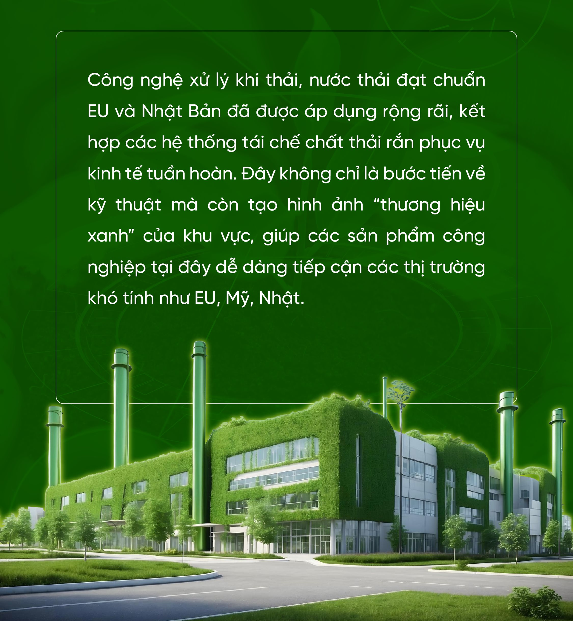 Việc đồng thời phát triển các khu dân cư thương mại và khu đô thị sinh thái giúp tạo sự cân bằng giữa phát triển công nghiệp và nâng cao chất lượng sống. Các mảng xanh, công viên ven sông, hạ tầng thể thao cộng đồng được bố trí đan xen với nhà máy, khu chế xuất, thể hiện rõ định hướng “đô thị công nghiệp xanh”.