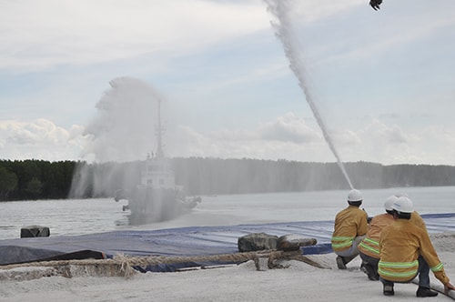 Phun nước chữa cháy trong trường hợp giả định tràn dầu gây cháy nổ