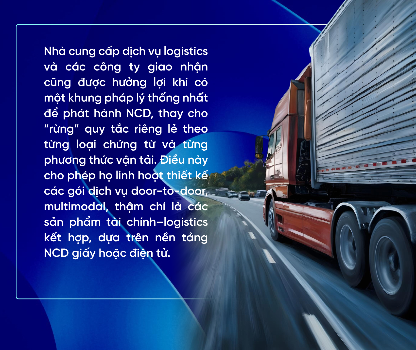Với người mua – thường là nhà nhập khẩu – NCD mở rộng cánh cửa tiếp cận tài trợ thương mại. Việc dùng NCD làm tài sản bảo đảm cho thư tín dụng, tài trợ đơn hàng hay các cấu trúc supply-chain finance trở nên khả thi không chỉ với lô hàng đường biển, mà còn với hàng đi đường sắt, đường bộ, đường không hoặc kết hợp nhiều phương thức. Điều này đặc biệt quan trọng với những ngành có chuỗi cung ứng phức tạp, vận chuyển đa phương thức như nông sản, linh kiện công nghiệp, bán lẻ đa kênh.