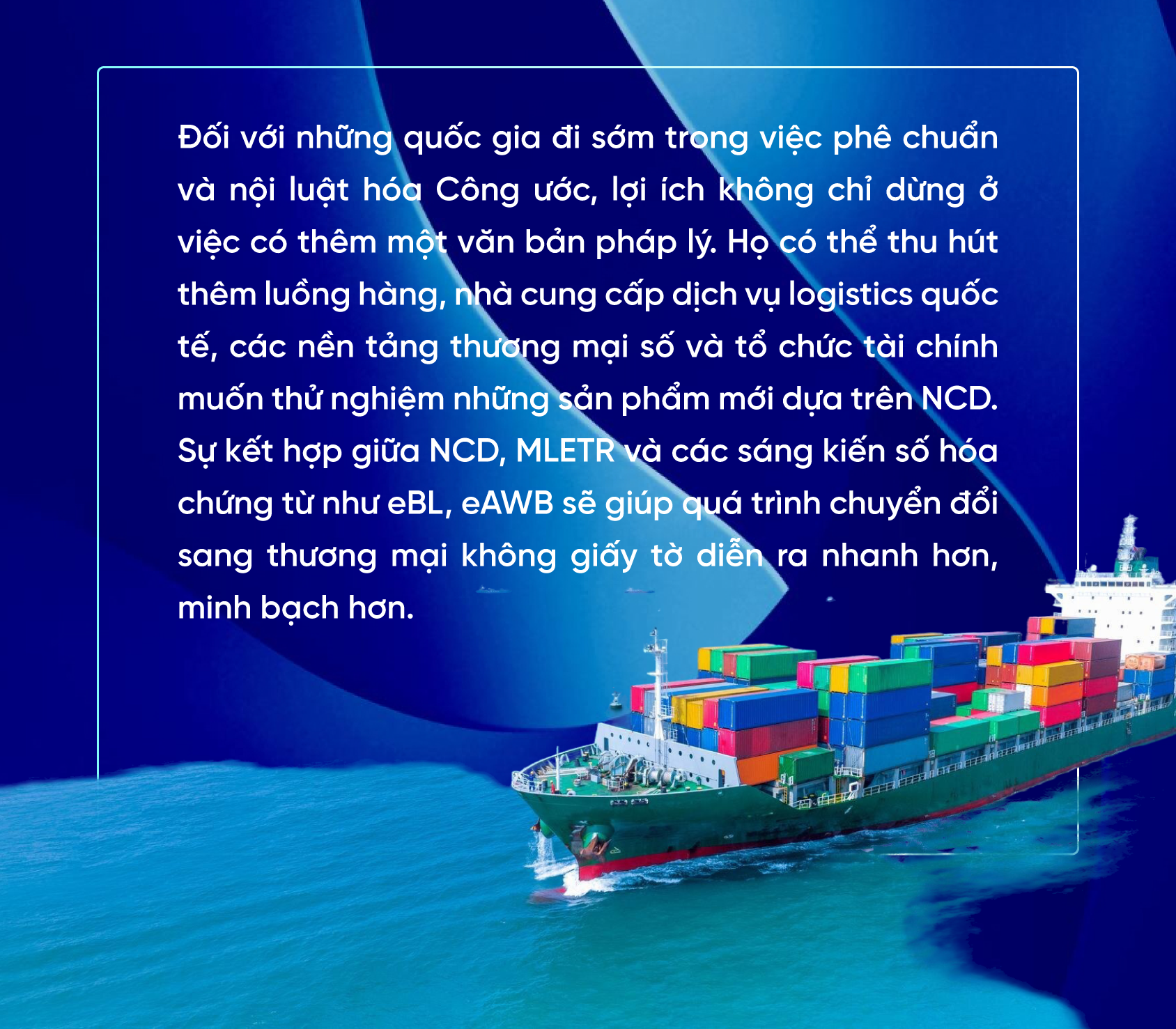Với các nền kinh tế đang phát triển như Việt Nam, nằm ở vị trí cửa ngõ các hành lang tiểu vùng Mekong và ASEAN, Công ước NCD mở ra cơ hội nâng cấp chuỗi cung ứng đa phương thức và cải thiện khả năng tiếp cận vốn cho doanh nghiệp xuất nhập khẩu. Câu hỏi không còn là “Công ước NCD có cần thiết hay không?” mà là “Chúng ta sẽ chuẩn bị như thế nào để biến Công ước này thành lợi thế cạnh tranh trước khi nó trở thành chuẩn mực mới của thương mại toàn cầu?”.