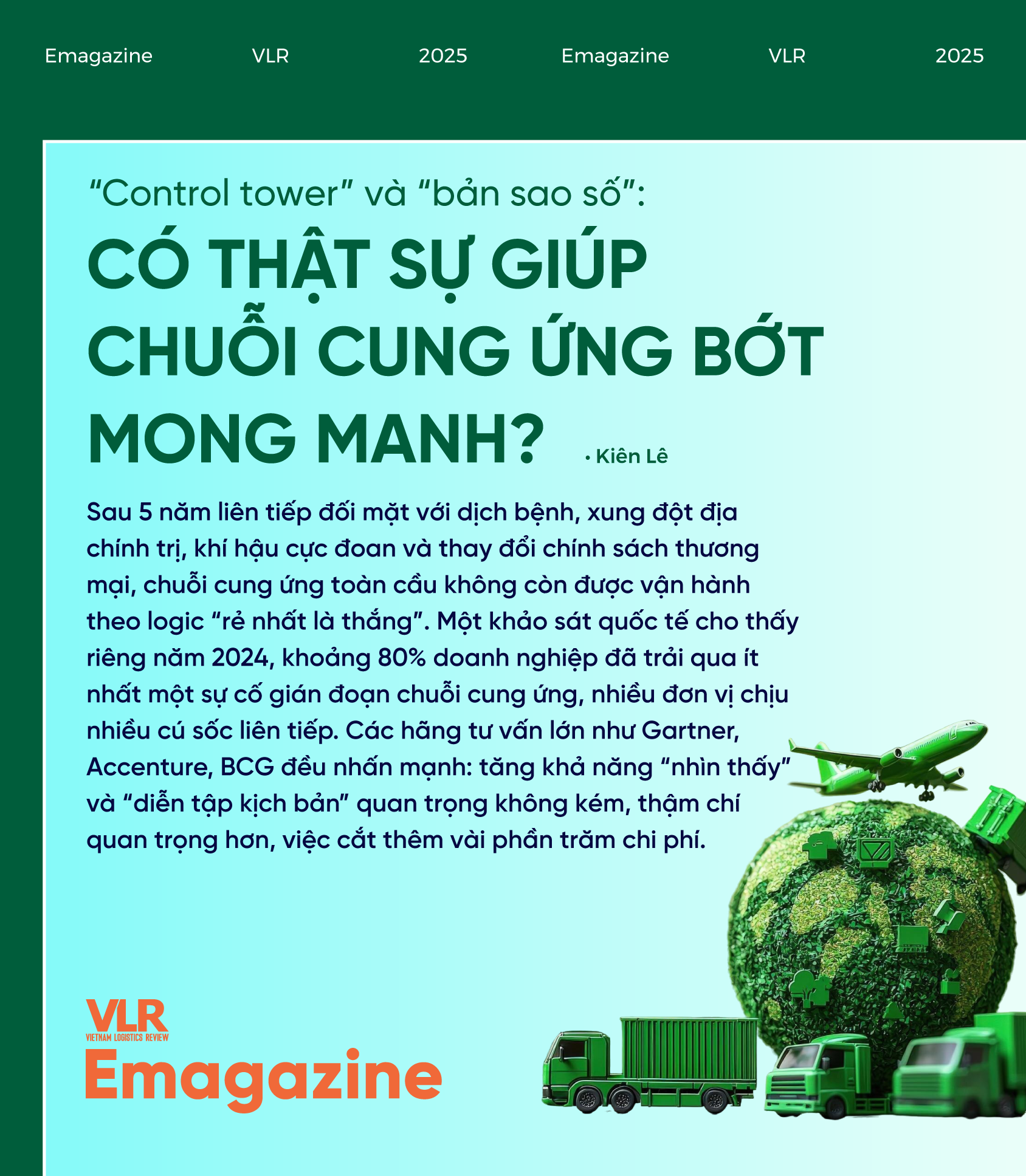 Trong bối cảnh đó, hai khái niệm control tower (tháp điều phối) và digital twin (bản sao số) được nhắc đến dày đặc như bộ đôi công cụ mới để quản trị rủi ro: một bên giám sát thời gian gần thực, một bên mô phỏng tương lai. Thị trường ứng dụng digital twin trong logistics được ước tính khoảng 1,2 tỉ USD năm 2023 và có thể tăng với tốc độ trên 25% mỗi năm giai đoạn 2024–2032. Nhưng chúng có thật sự “làm chuỗi cung ứng bớt mong manh”, hay sẽ trở thành những dự án hào nhoáng trên slide nếu doanh nghiệp chuẩn bị không đúng cách?