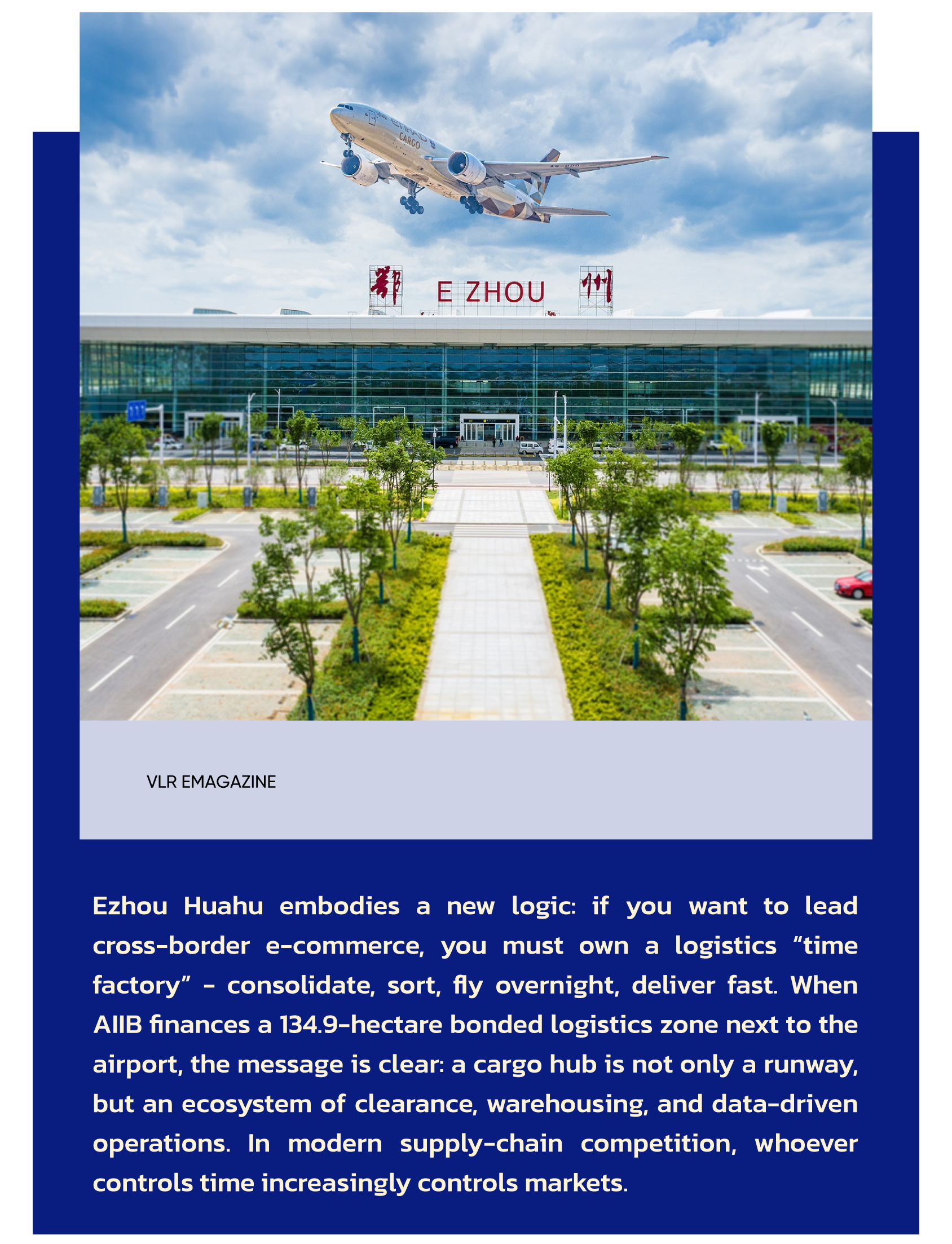What stands out at Ezhou Huahu is how China is packaging air-cargo capability into a scalable structure: cargo hub + bonded/FTZ logistics + e-commerce sorting + ground connectivity + international route network. AIIB materials and local official communications reinforce that this is not a branding exercise, but a model backed by financing, industrial planning, and institutional design.