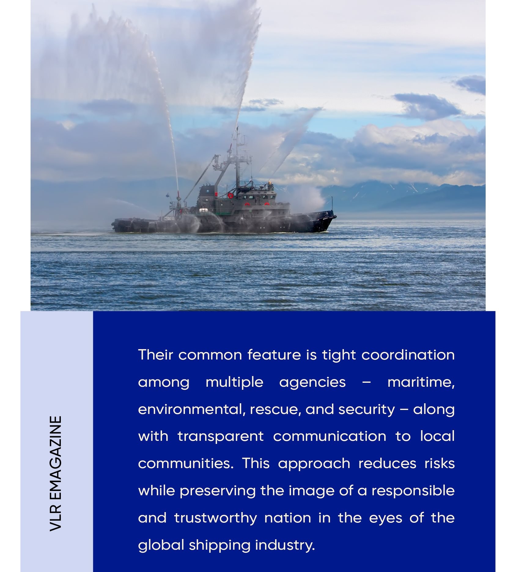 Countries with strong track records, such as the Netherlands, Japan, and Denmark, maintain lists of designated “safe ports” alongside rapid risk assessment procedures. When a vessel requests entry, dedicated teams quickly analyze the type and level of cargo hazard, the status of fire control, the ability to isolate the ship and minimize environmental impact, and the financial commitments from the shipowner and insurers.