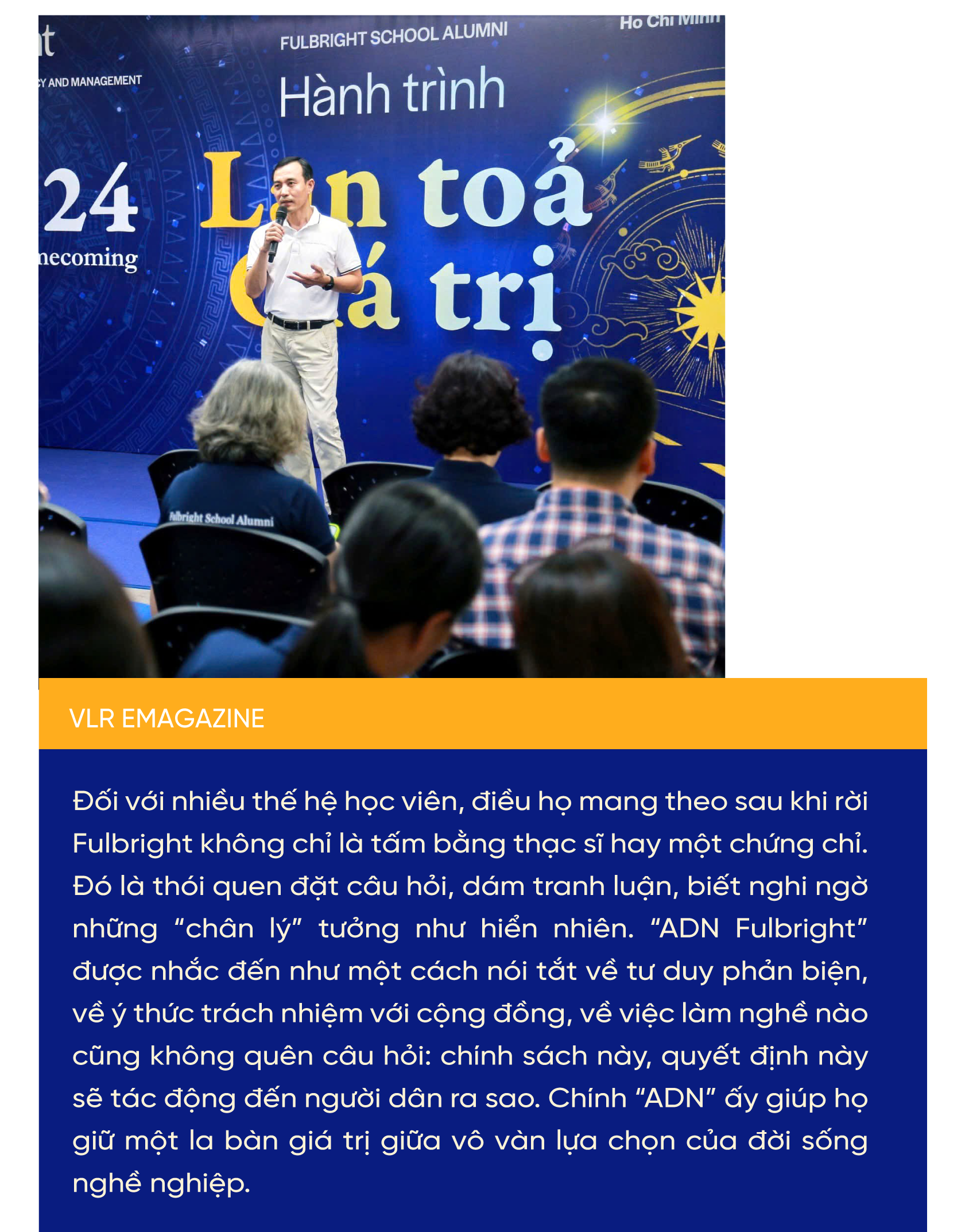 Vì vậy, “về trường” không phải để hoài niệm, mà để nạp lại năng lượng, cập nhật tri thức, làm mới các kết nối và tự vấn mình: trong 5 năm, 10 năm tới, mình sẽ đóng góp gì cho cộng đồng, cho địa phương, cho đất nước? Với mỗi thế hệ bước ra từ Fulbright, câu hỏi ấy vừa là lời nhắc, vừa là lời hẹn.