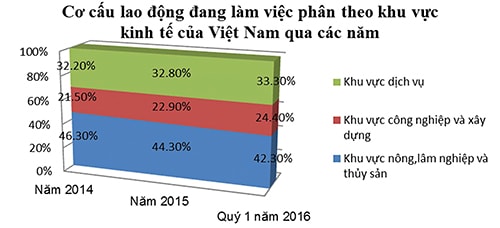 - Thất nghiệp trong độ tuổi lao động Năm 2014, tỷ lệ thất nghiệp (trong độ tuổi lao động) chung là 2,08% thấp hơn so với năm 2015 (1.9%) và thấp hơn quý I.2016 (2,23 %). Tỷ lệ thất nghiệp của thành thị cao gấp 2,3 lần của nông thôn và có xu hướng thu hẹp lại (1,6 lần quý I.2016).