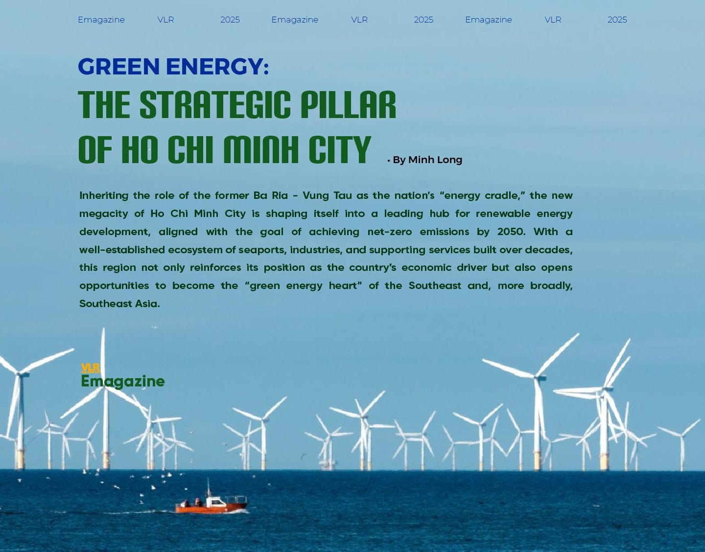 Renewable energy is fast becoming the “green lifeblood” sustaining the long-term growth of the new Ho Chi Minh City. With its energy industry foundation from the former Ba Ria - Vung Tau, the industrial support of Binh Duong, and the international gateway role of the Cai Mep - Thi Vai port, the city stands on the cusp of a breakthrough.