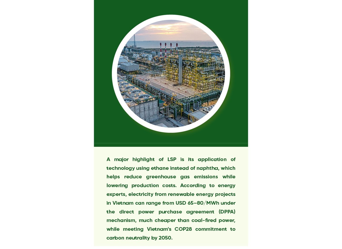 Alongside its wind power potential, the former Ba Ria - Vung Tau also holds significant advantages in solar power and liquefied natural gas (LNG) power generation. Several solar projects, ranging from dozens to hundreds of MW, have already been put into operation, supplying thousands of MWh of clean electricity annually to the grid. Particularly noteworthy is the Long Sơn Petrochemical Complex (LSP), with total investment exceeding USD 5.5 billion, which was relaunched in 2025 with an additional USD 500 million, cementing its role as a cornerstone of the new energy industry for Ho Chi Minh City.