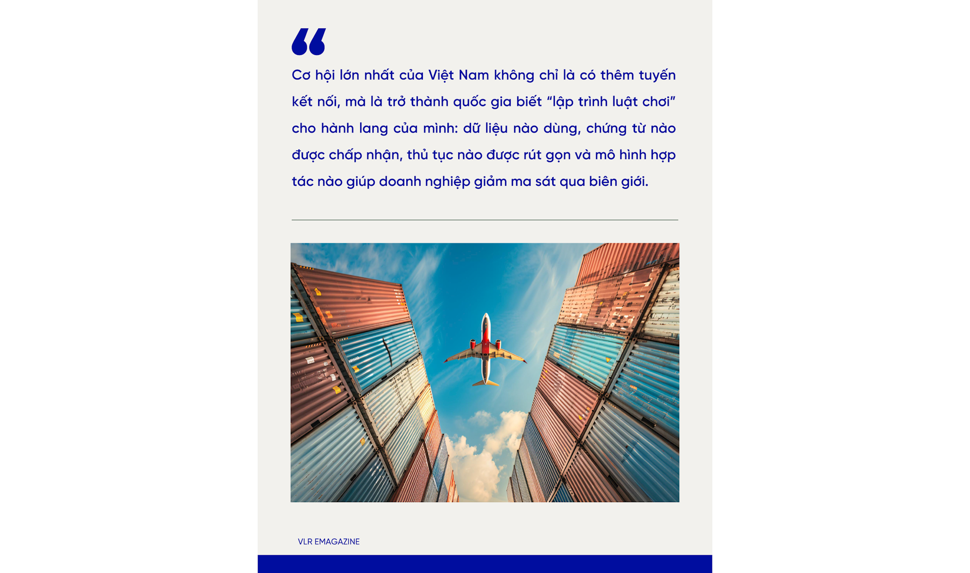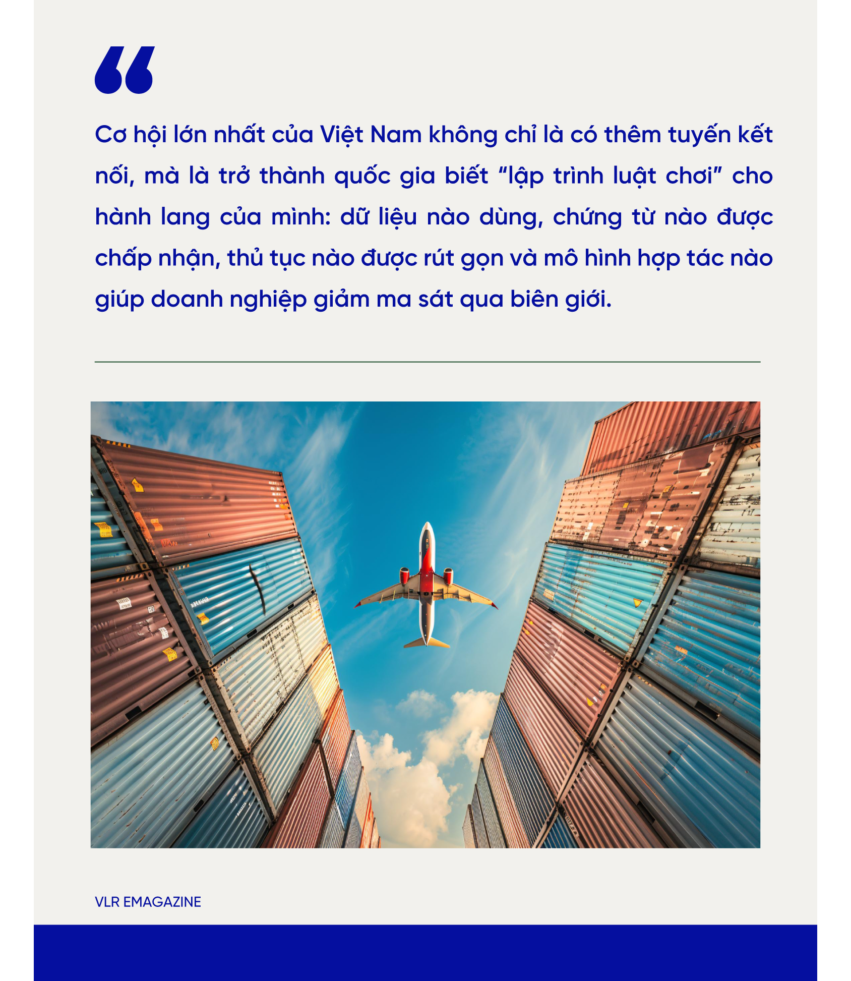 Nếu đặt cạnh nhau, hai công cụ này giải quyết hai điểm nghẽn khác nhau nhưng liên hoàn. eFBL xử lý bài toán số hóa chứng từ, quyền kiểm soát chứng từ vận tải và khả năng liên thông dữ liệu. TIR xử lý bài toán quá cảnh hải quan, bảo lãnh thuế phí và giảm can thiệp lặp lại tại biên giới. Với Việt Nam - nơi nhu cầu nâng hiệu quả vận tải xuyên biên giới tới Trung Quốc, Lào, Campuchia và xa hơn tới các mạng kết nối Á - Âu ngày càng rõ - đây là gợi ý rất đáng suy nghĩ. Thay vì chỉ thảo luận về mở tuyến, Việt Nam cần đồng thời bàn tới chuẩn dữ liệu, chuẩn pháp lý và chuẩn thủ tục cho từng hành lang ưu tiên.