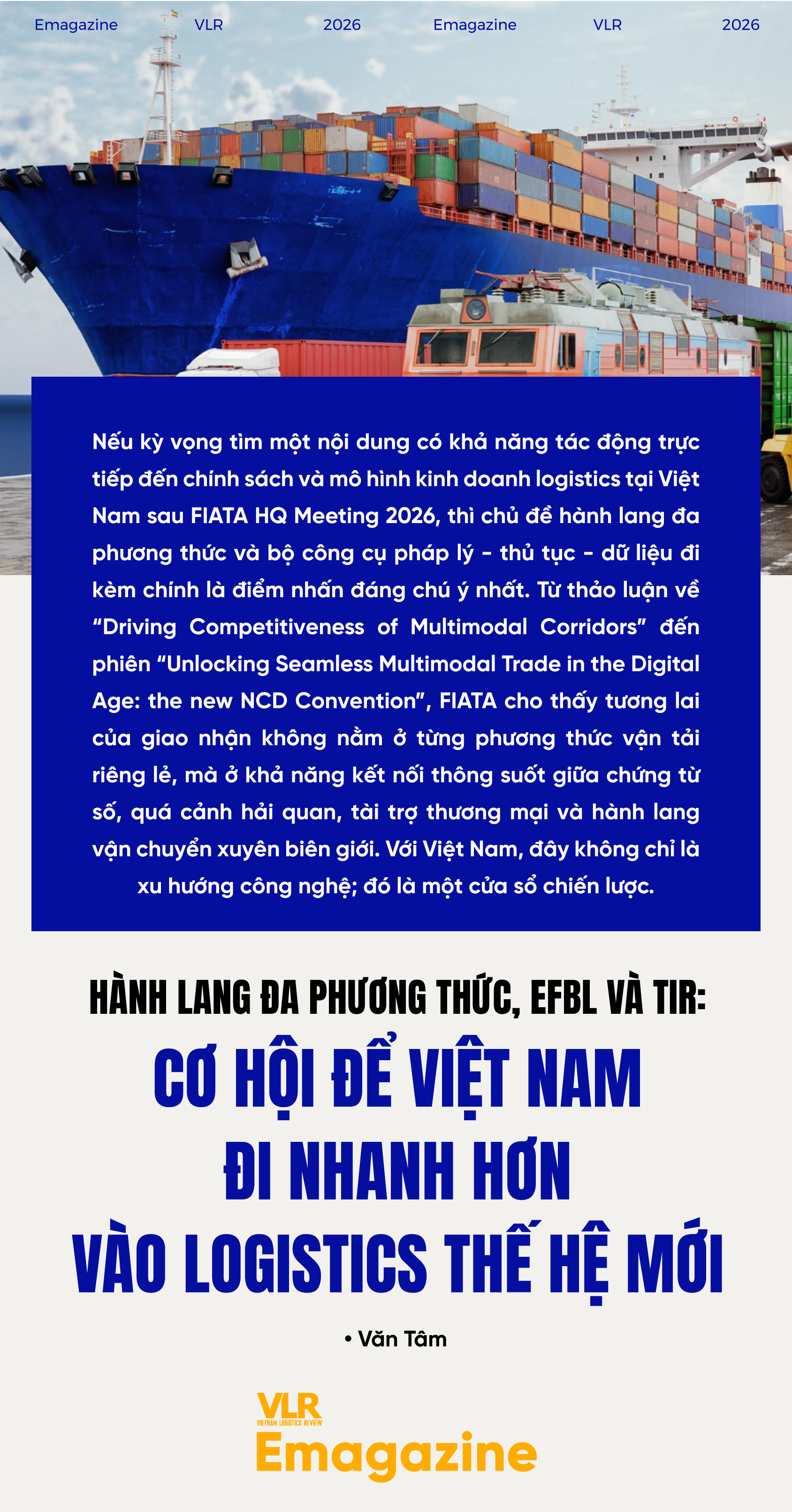 FIATA HQ Meeting 2026 cho thấy cuộc đua logistics thế hệ mới sẽ không được quyết định chỉ bởi cảng sâu hay đường rộng, mà bởi khả năng kết nối hạ tầng với pháp lý, thủ tục và dữ liệu. TIR, eFBL và NCD Convention là ba tín hiệu quan trọng của sự chuyển dịch đó. Với Việt Nam, đây là lúc cần vượt lên khỏi tư duy “đầu tư tuyến” đơn lẻ để đi tới tư duy “thiết kế hành lang” theo chuẩn mới. Ai làm chủ được corridor logic sẽ không chỉ vận chuyển hàng hóa hiệu quả hơn, mà còn nắm quyền chủ động cao hơn trong chuỗi giá trị thương mại khu vực.