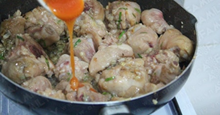 Cho gà vào xào săn.