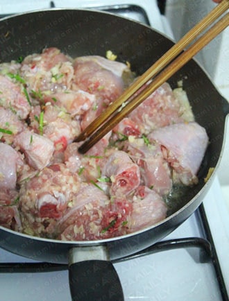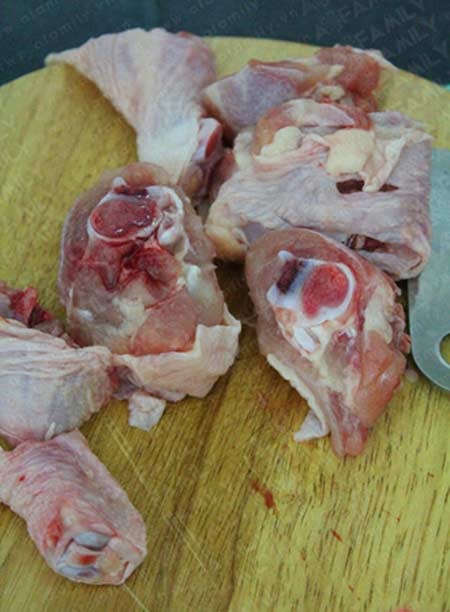 Gà rửa sạch, chặt miếng vừa ăn.
