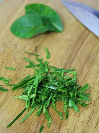 Lá chanh thái sợi rồi cắt nhỏ.