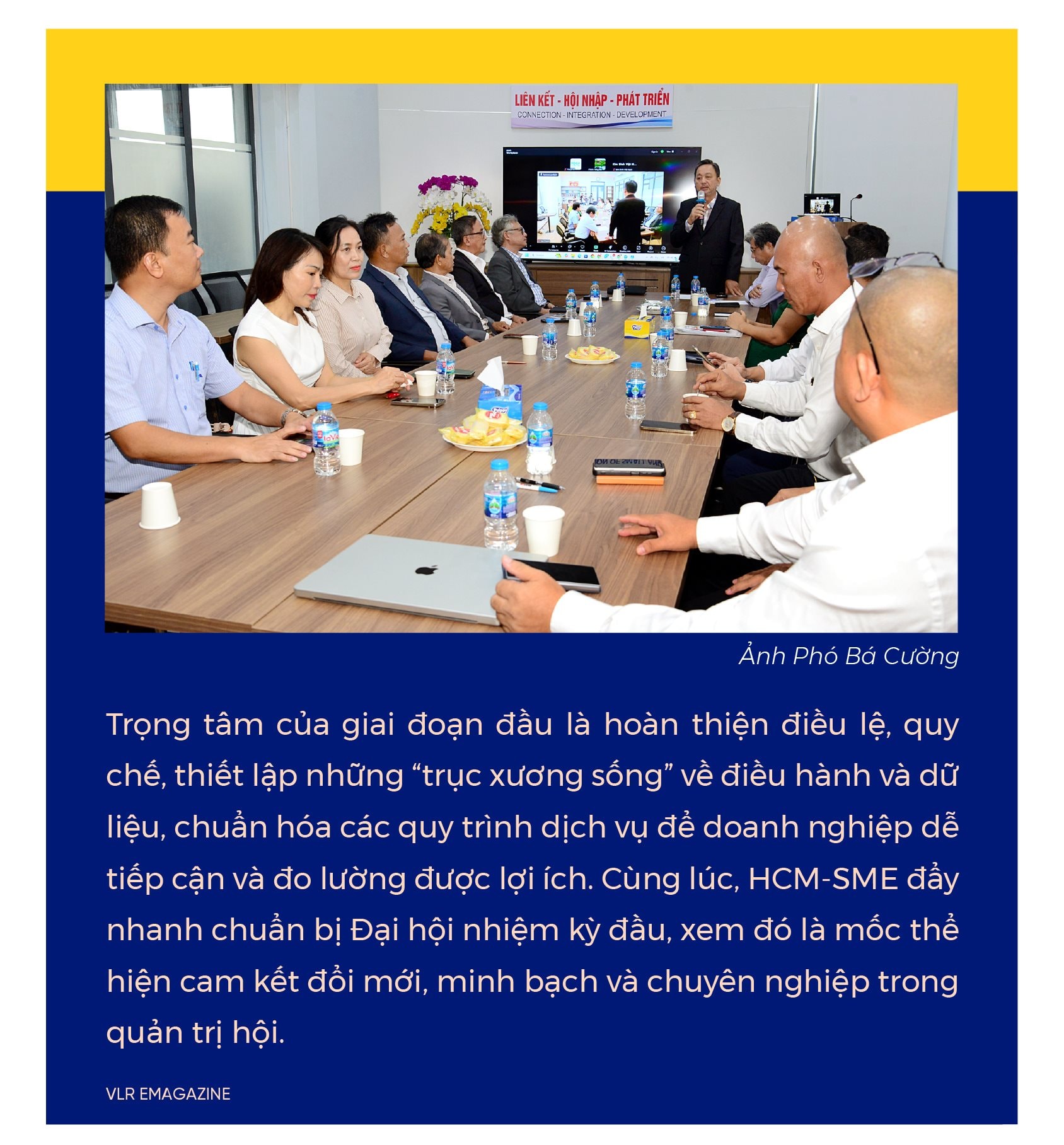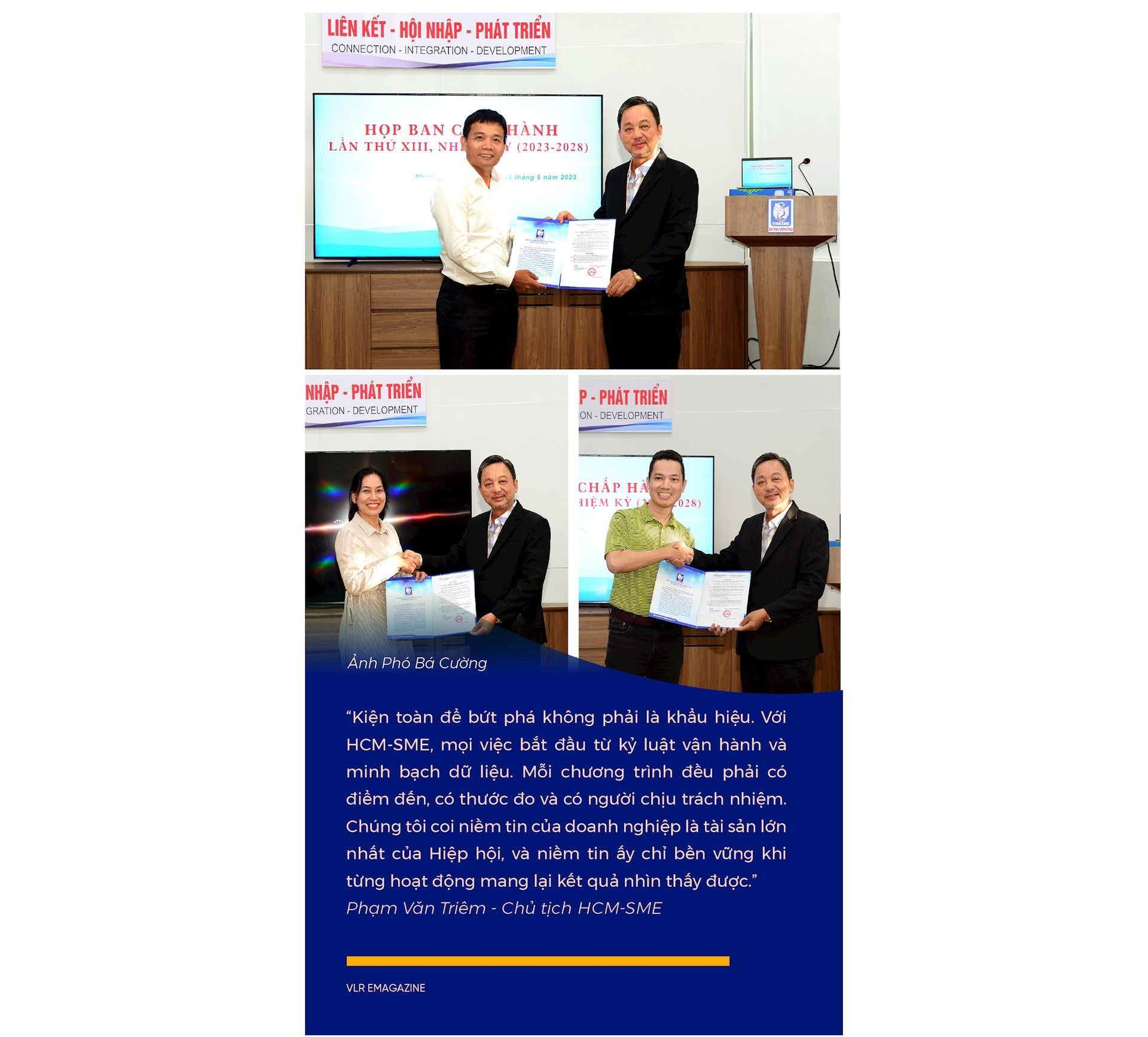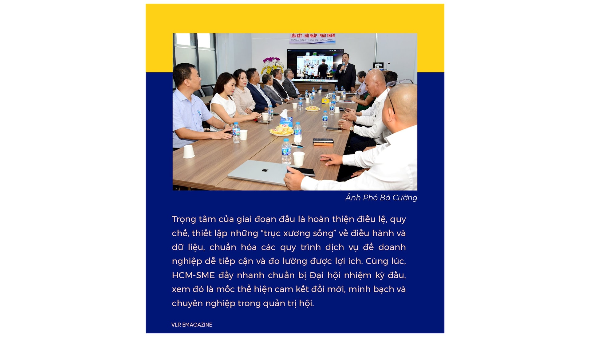 Ở tầng vận hành, HCM-SME đặt trọng tâm vào kỷ luật quy trình và minh bạch thông tin. Mỗi sáng kiến đều có ma trận phân công trách nhiệm, thời hạn và tiêu chí đánh giá, giúp các ban chuyên môn phối hợp nhịp nhàng, tránh lãng phí nguồn lực. Báo cáo hoạt động và tài chính được công bố định kỳ; cơ chế kiểm tra nội bộ, quy tắc xung đột lợi ích và chuẩn đạo đức nghề nghiệp được áp dụng nghiêm túc để bảo đảm tính liêm chính của tổ chức. Hiệp hội cũng khuyến khích văn hóa “phản hồi thẳng thắn” – mọi góp ý của hội viên đều được ghi nhận và phản hồi công khai.