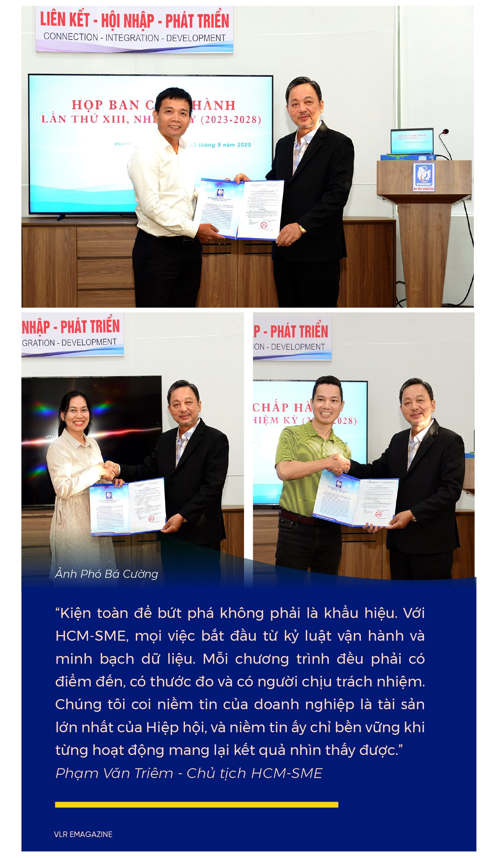 Ông Phạm Văn Triêm - Chủ tịch HCM-SME nhấn mạnh, kiện toàn tổ chức không chỉ là sắp xếp nhân sự mà là “định hình phương thức vận hành mới” – một phương thức coi trải nghiệm và kết quả tại doanh nghiệp là trung tâm. Trong câu chuyện dài hơi ấy, Hiệp hội không làm thay doanh nghiệp mà làm cùng doanh nghiệp, kết nối các nguồn lực chính sách – tài chính – thị trường để rút ngắn hành trình nâng cấp năng lực.