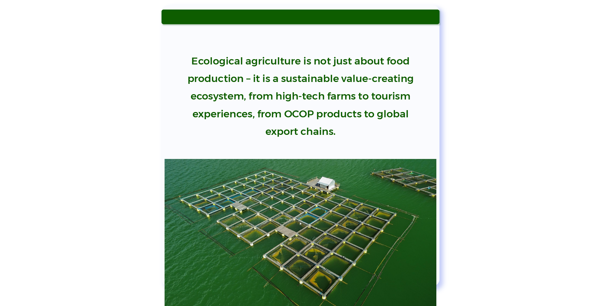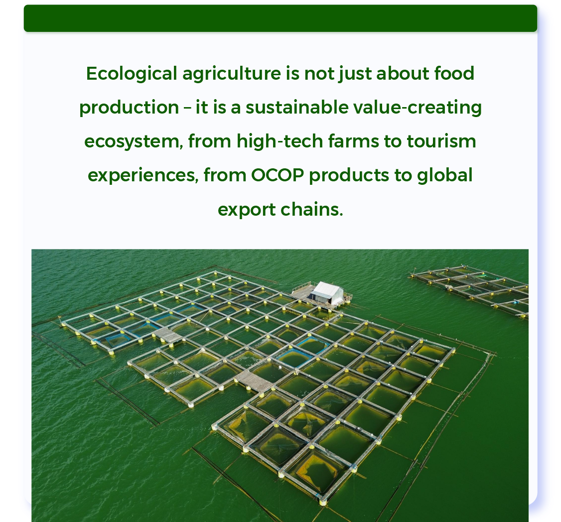 From organic agriculture and green aquaculture in the former Ba Ria–Vung Tau, today’s mega-city Ho Chi Minh City is building a circular agricultural economy, enhancing the value of raw material areas, and closely integrating into global supply chains. With a vision toward 2030–2050, the ecological agriculture model is the key to ensuring environmental, social, and economic sustainability – forming the spiritual foundation of this modern metropolis.