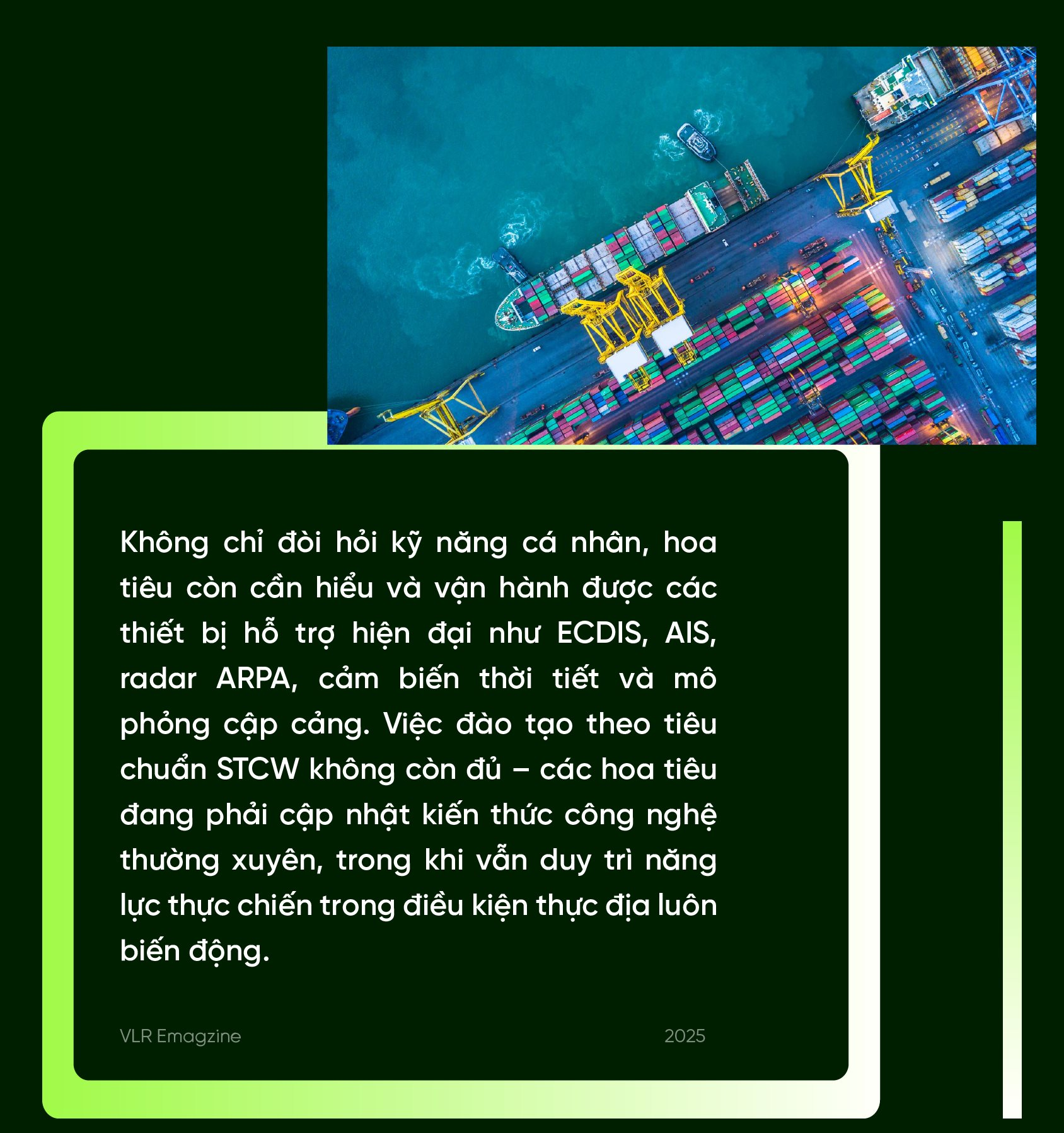 Sự thay đổi của chuỗi logistics toàn cầu buộc hoa tiêu không chỉ còn là người am hiểu hải đồ hay kinh nghiệm sóng gió – mà còn là mắt xích quản trị rủi ro trong toàn bộ chuỗi vận hành. Họ không chỉ dẫn tàu mà họ còn quản lý thời gian cập bến, hỗ trợ tối ưu hóa dòng tàu, phối hợp với cảng vụ và doanh nghiệp logistics trong điều kiện thời gian thực.