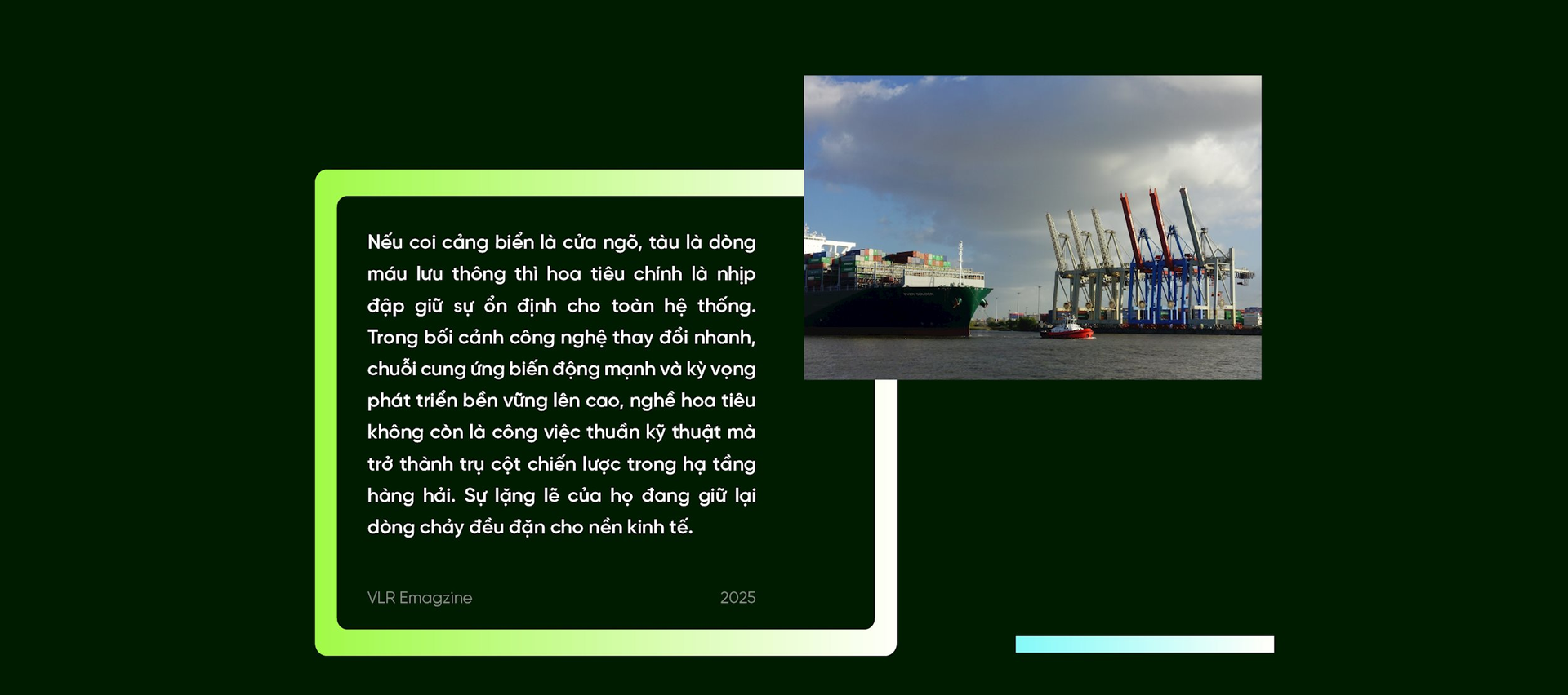 Giữa nhịp chuyển đổi mạnh mẽ của ngành hàng hải toàn cầu, những người hoa tiêu – vốn được ví như “người dẫn đường” thầm lặng hiện đang phải thích nghi với một loạt yêu cầu mới: tàu lớn hơn, công nghệ phức tạp hơn, kỳ vọng an toàn cao hơn, và đặc biệt là áp lực chuyển đổi xanh. Trong khi thế giới logistics nói nhiều đến tự động hóa, AI hay chuỗi lạnh, thì ở đầu mũi tàu, một lực lượng thầm lặng vẫn ngày đêm chèo lái sự ổn định của hàng triệu tấn hàng hóa ra – vào cảng biển Việt Nam.