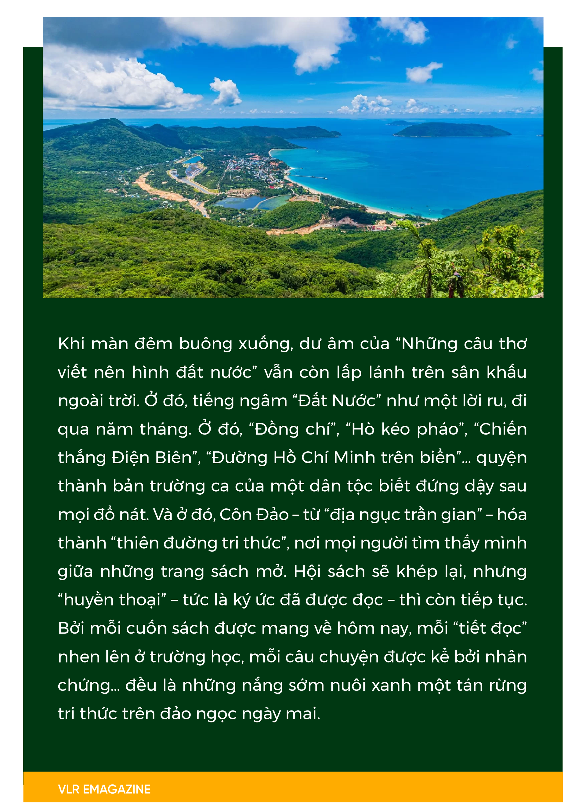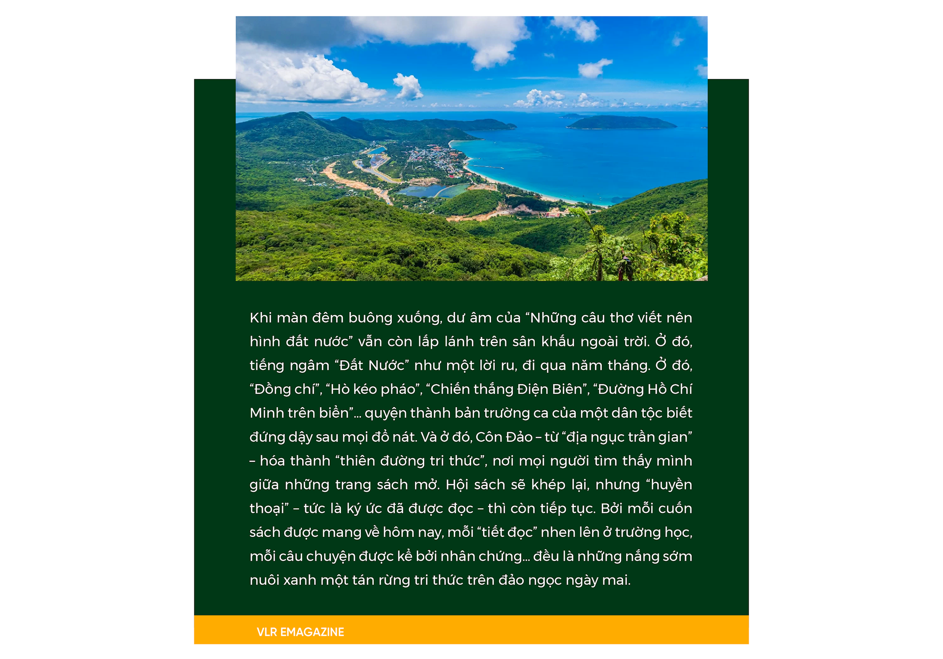Và khi con tàu rời bến, để lại phía sau Cổng chào Tôn Đức Thắng ngập ánh đèn, người ta chợt hiểu: Côn Đảo không chỉ có bãi cát và rừng bàng cổ thụ. Côn Đảo còn có những trang sách mới, những giấc mơ mới, những dự phóng mới. Đó là cách một hòn đảo viết tiếp huyền thoại của mình – lặng lẽ, bền bỉ – bằng chữ.