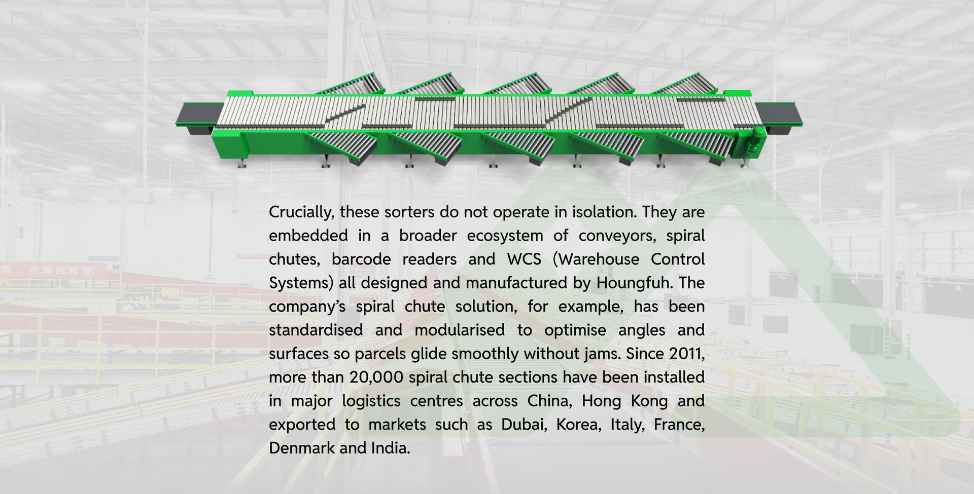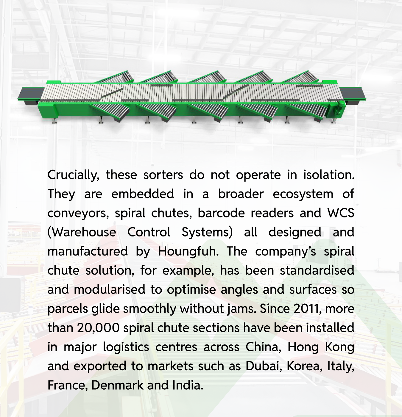 Scale here is not just about factories or project counts; it is about technology accumulation. Houngfuh holds dozens of software copyrights, invention patents and more than a hundred utility and design patents across automation, sortation and warehouse systems. This intellectual-property portfolio forms the backbone for continuous improvement of its sorters, conveyor systems and intralogistics solutions, keeping pace with the rapidly rising demands of modern logistics hubs.