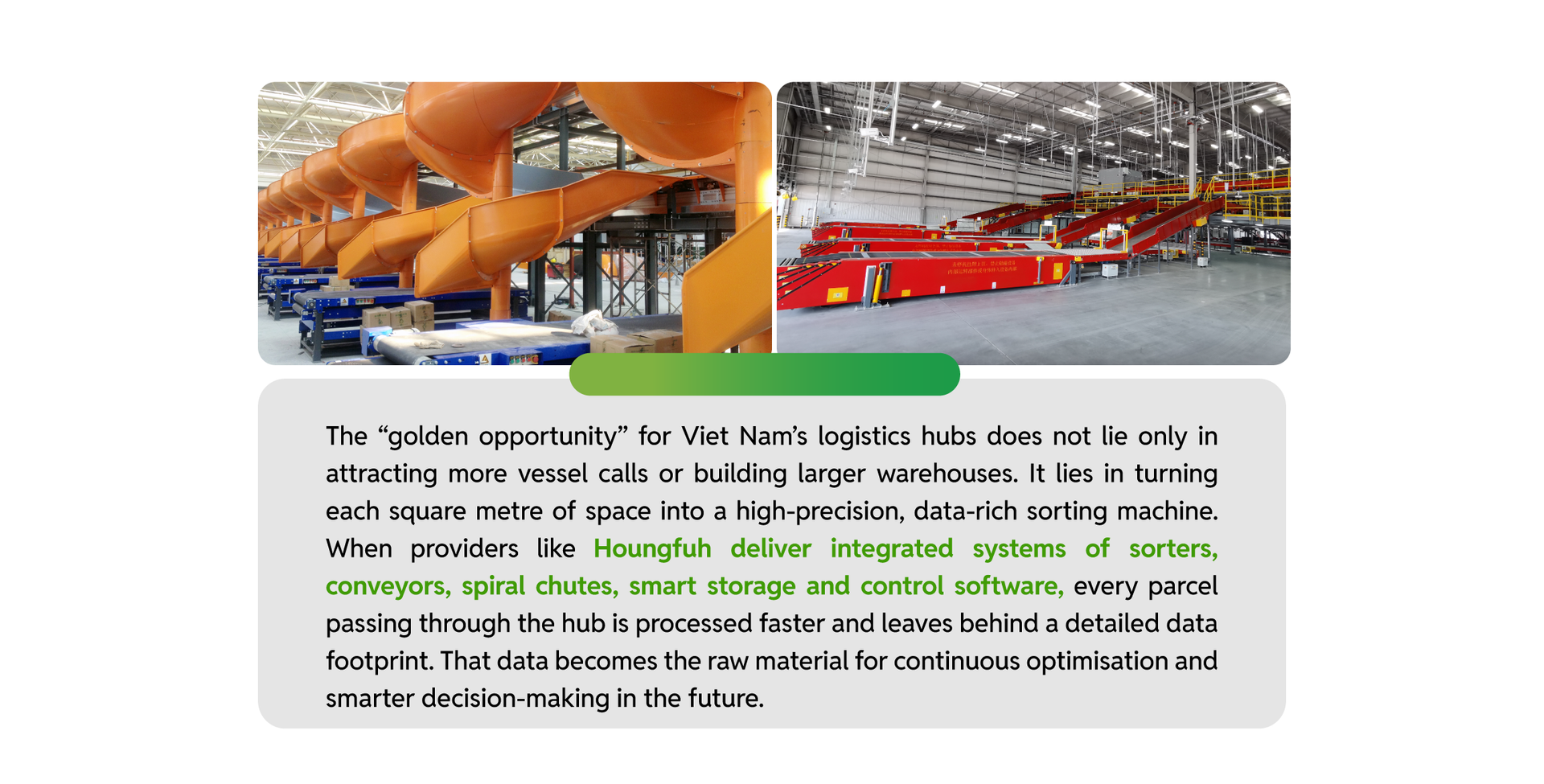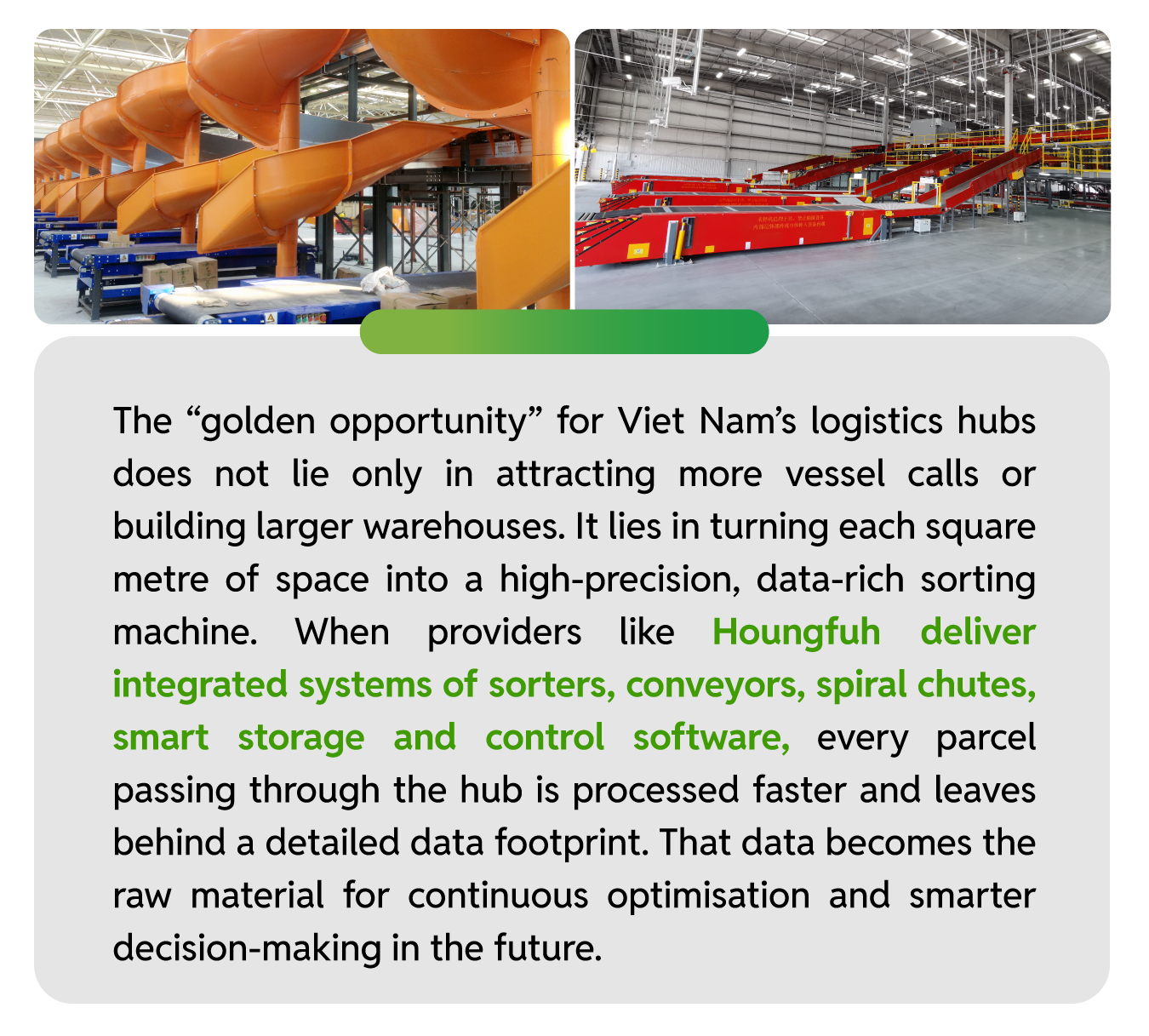 As global supply chains are being reconfigured, Viet Nam has a rare chance to position itself as a new manufacturing and logistics hub in the region. To convert this opportunity into long-term advantage, however, the country must upgrade both its hard and soft logistics infrastructure – and smart sorting centres are a critical link in that chain. With 40 years of experience, eight factories, more than 6,300 projects worldwide and a product portfolio finely tuned for e-commerce, Houngfuh stands out as a strategic partner for Vietnamese enterprises embarking on the journey to rebuild their logistics hubs. Ultimately, this is not just a story about equipment; it is about raising operational standards and opening the door for Viet Nam to compete confidently on regional and global supply-chain maps.