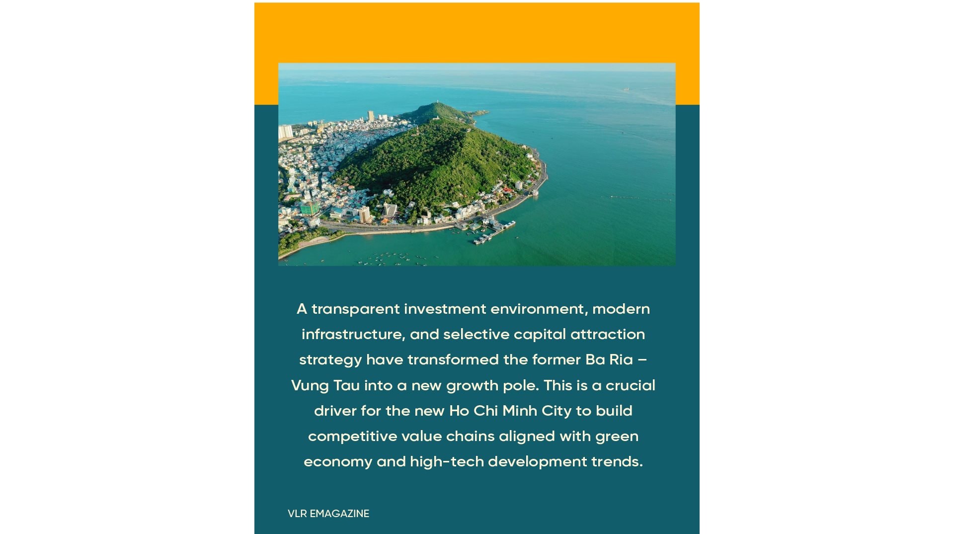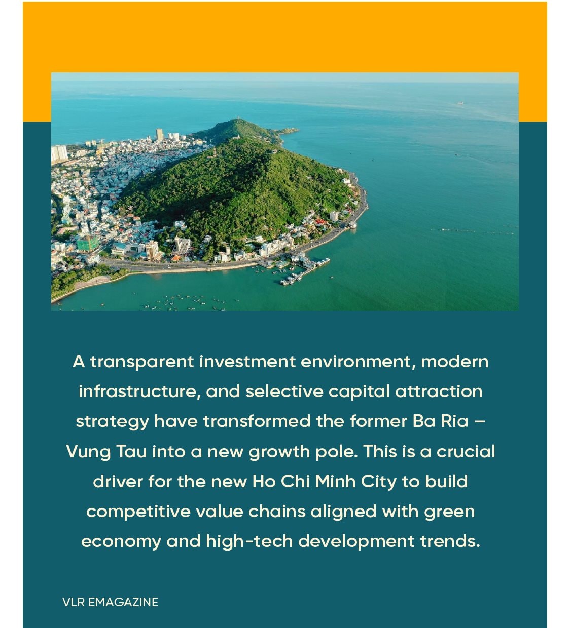 Looking at the practices of reform and investment attraction, it is evident that a flexible institutional framework and clear policies are the key for the former Ba Ria – Vung Tau area to emerge as a prime destination for global investors. Within the structure of the new Ho Chi Minh City, this region continues to serve as an industrial–service–urban connector within the mega-city.
