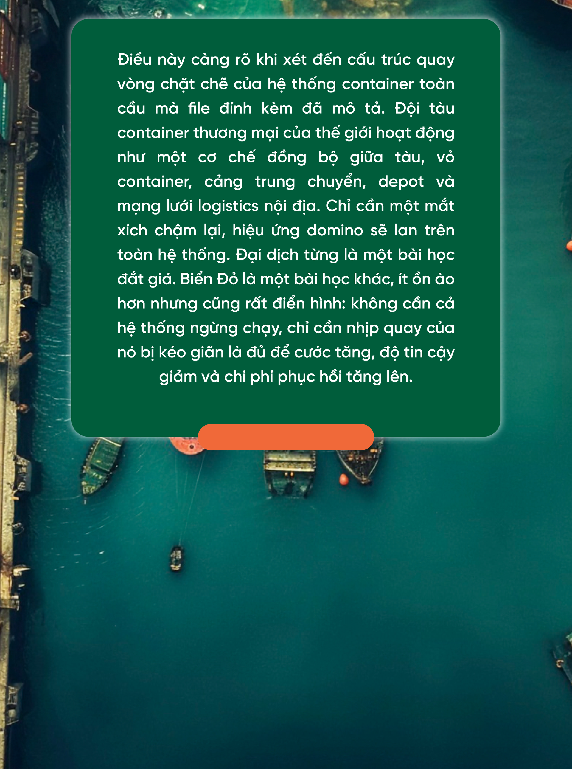Lý do khiến mô hình cũ bị thách thức là vì thế giới không còn vận hành trong một môi trường ổn định như trước. Theo dữ liệu của UNCTAD, khi tàu container phải tránh Biển Đỏ và đi vòng qua Mũi Hảo Vọng, hành trình dài hơn không chỉ gây chậm trễ mà còn làm tăng nhiều lớp chi phí cùng lúc: nhiên liệu, lương thuyền viên, phí thuê tàu, bảo hiểm, phát thải và áp lực cảng bến tại các điểm trung chuyển thay thế. UNCTAD cũng cho biết các tuyến vòng đã làm nhu cầu container ship tăng thêm khoảng 12% vào giữa năm 2024. Nói một cách đơn giản, cả hệ thống phải dùng nhiều năng lực hơn chỉ để duy trì cùng một lưu lượng. Đó chính là khoảnh khắc mà rủi ro được “định giá lại” bằng tiền thật.