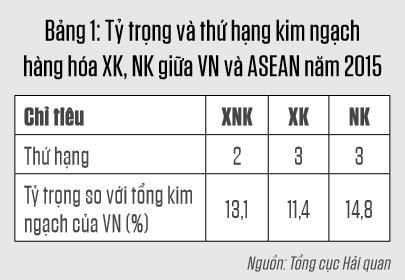 Cụ thể, trước năm 2010, tính chung ASEAN là đối tác thương mại hàng hóa lớn nhất, chiếm tỷ trọng trên 20% trong tổng kim ngạch xuất nhập khẩu (XNK) của VN. Về xuất khẩu (XK), là thị trường XK hàng hóa lớn thứ 3 của các DN VN, chỉ sau thị trường Hoa Kỳ và thị trường các nước thành viên Liên minh châu ÂuEU. Còn ở chiều ngược lại, ASEAN là đối tác thương mại cung cấp nguồn hàng hóa lớn thứ 2 cho các DN VN, chỉ đứng sau Trung Quốc.