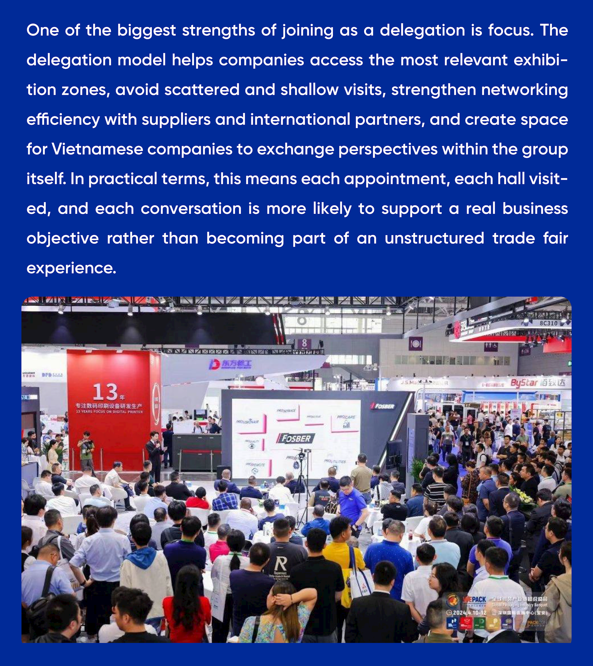 In a packaging market shaped by fast-moving technology, new materials, and rising global competition, attending an international exhibition is no longer about walking the halls and collecting brochures. Businesses now need structured market access programs that turn every day abroad into measurable value: identifying the right trends, meeting the right partners, and evaluating the right opportunities for the next stage of growth. That is exactly why the Vietnamese business program for WEPACK 2026 is drawing increasing attention from the printing and packaging community.