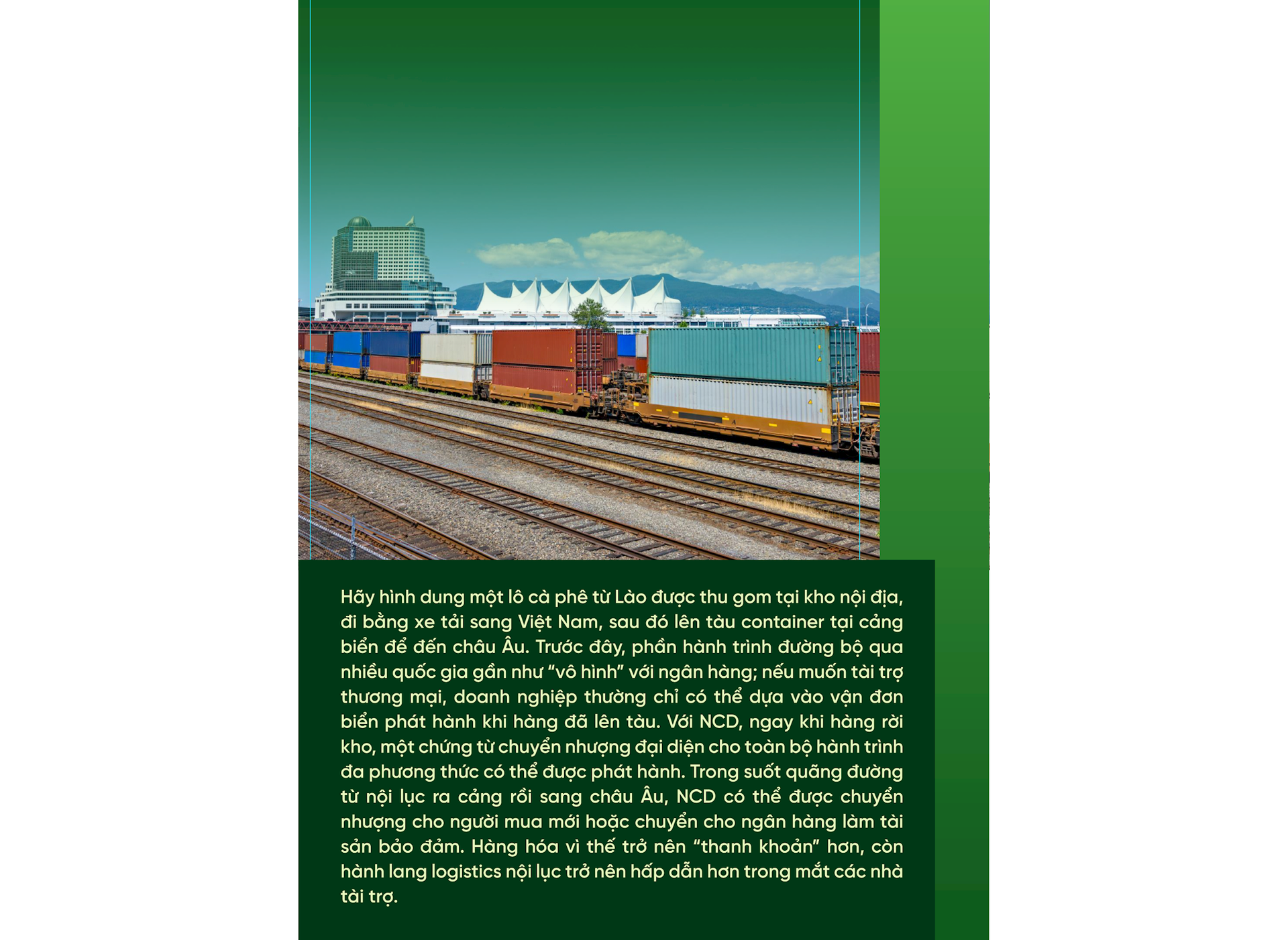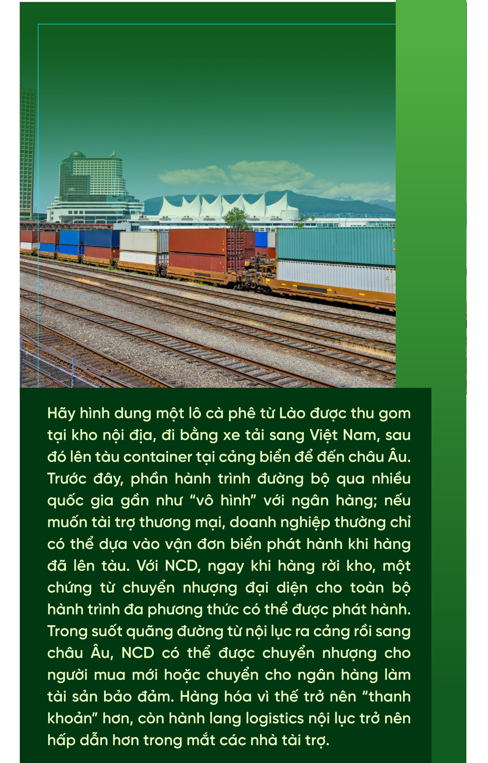 Đối với ngân hàng và các tổ chức tài chính, NCD cung cấp một lớp tài sản bảo đảm mới. Thay vì chỉ tài trợ những lô hàng có vận đơn biển, họ có thể mở rộng danh mục sang các tuyến đường bộ, đường sắt, đường không, hoặc kết hợp đa phương thức. UNCITRAL và các đối tác tại hội nghị “Shaping the Future” năm 2025 từng nhấn mạnh, NCD có thể trở thành công cụ giúp thu hẹp khoảng cách trade finance, đặc biệt cho các doanh nghiệp nhỏ và vừa, khi họ có thể dùng lô hàng trên đường làm tài sản bảo đảm mà không cần thế chấp thêm nhà xưởng, máy móc.