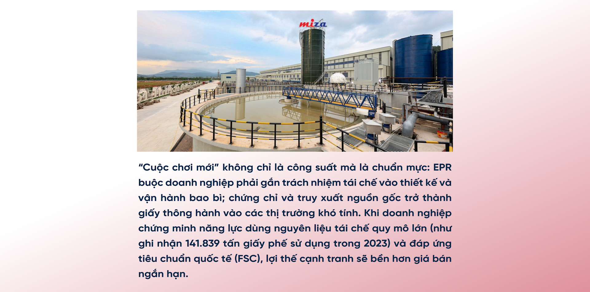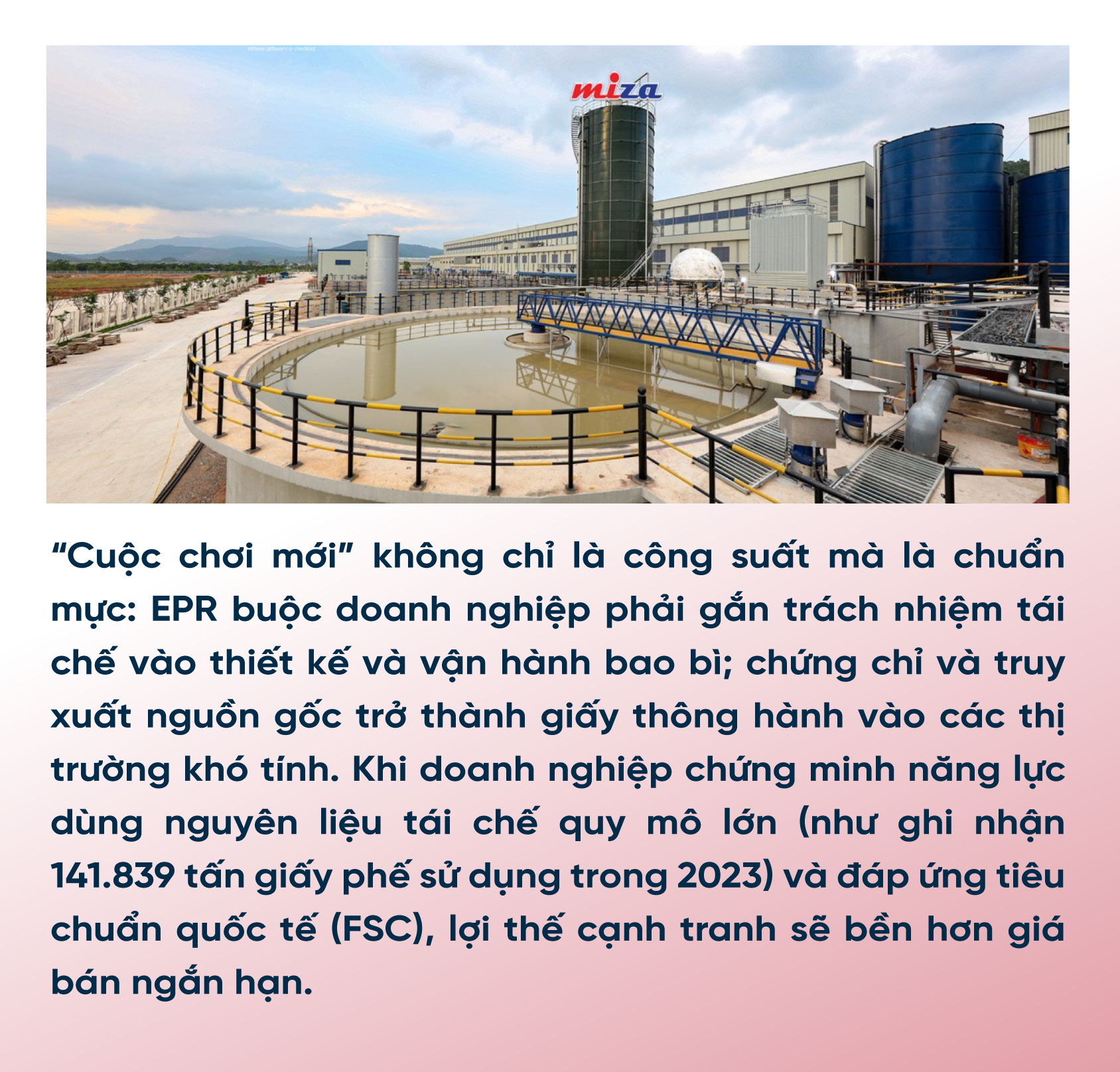 Thứ ba là tái chế thực chất. Chúng tôi nhận thấy một nỗ lực đáng chú ý theo hướng tuần hoàn: với “Environmental overview 2023” với 141.839 tấn giấy phế được sử dụng trong năm 2023.