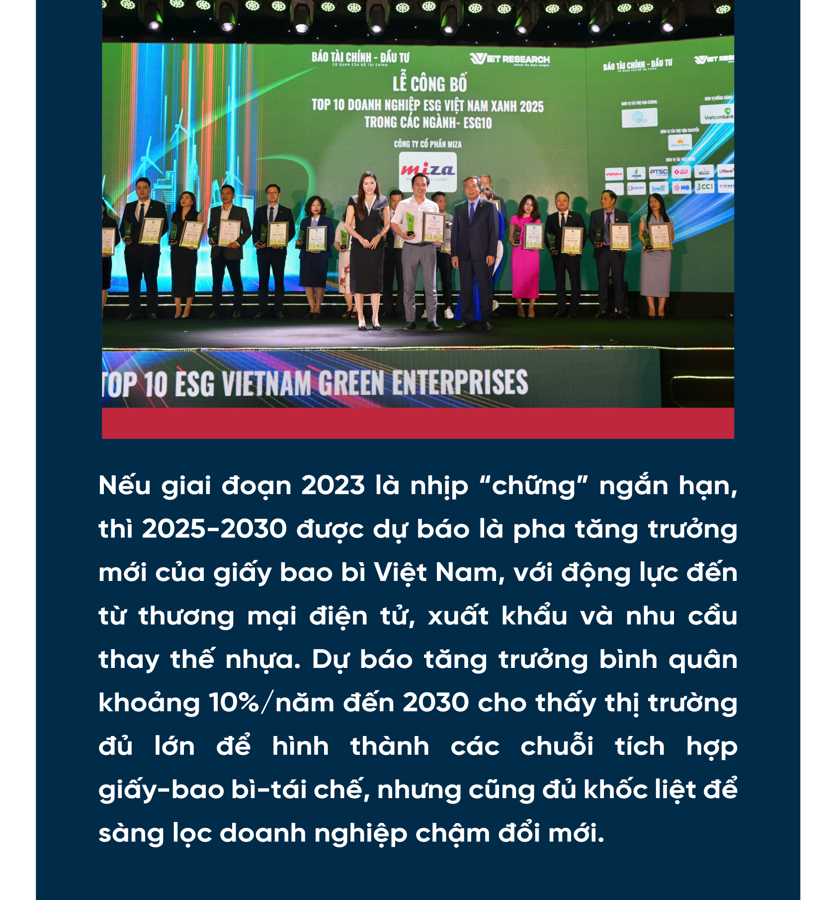 Từ dữ liệu mà chúng tôi thu nhận được, có thể thấy xu hướng đầu tư của doanh nghiệp Việt Nam đang dịch chuyển theo mô hình “tích hợp giấy - bao bì - logistics - tuần hoàn”. Ví dụ, Miza Corporation hiện công bố quy mô vốn điều lệ đăng ký 999,199 tỷ đồng, khoảng 400 lao động, diện tích nhà máy 10,5 ha và sản lượng hiện tại 200.000 tấn/năm, trong đó 95% là các dòng giấy Medium, Testliner & Kraftliner.
