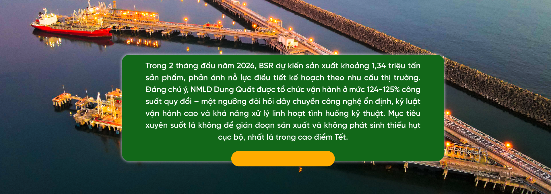 Vận hành NMLD Dung Quất ở mức 124-125% công suất quy đổi trong dịp Tết không chỉ là câu chuyện tăng sản lượng, mà là một bài kiểm tra tổng lực: năng lực kỹ thuật của dây chuyền, kỷ luật an toàn - an ninh, độ bền của hệ thống bảo trì, và đặc biệt là năng lực tổ chức chuỗi cung ứng “đầu vào - đầu ra” trong điều kiện cao điểm. Từ kế hoạch sản xuất 1,34 triệu tấn đầu năm, lịch tiếp nhận 5 chuyến tàu nguyên liệu trong kỳ nghỉ, cho đến tổ chức xuất bán bình thường cả đường biển lẫn đường bộ, BSR đang cho thấy cách tiếp cận chủ động: tăng tải có kiểm soát, vận hành liên tục nhưng không thỏa hiệp an toàn.