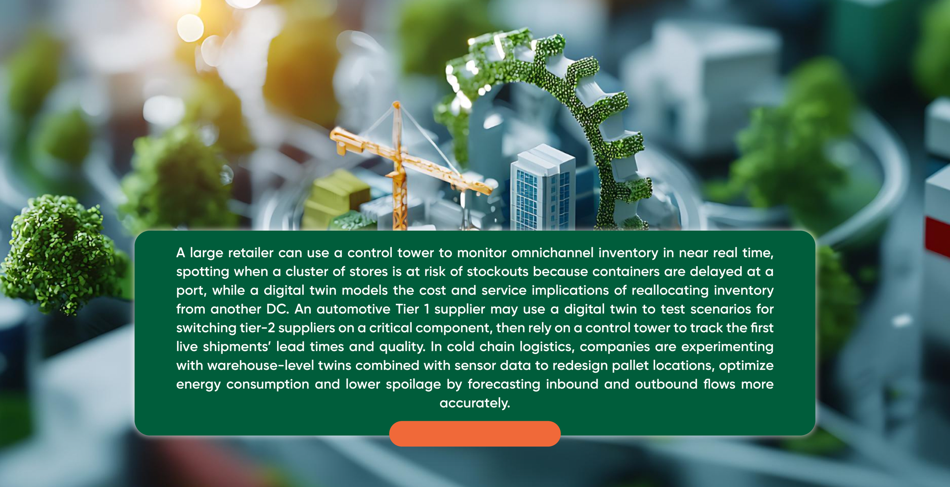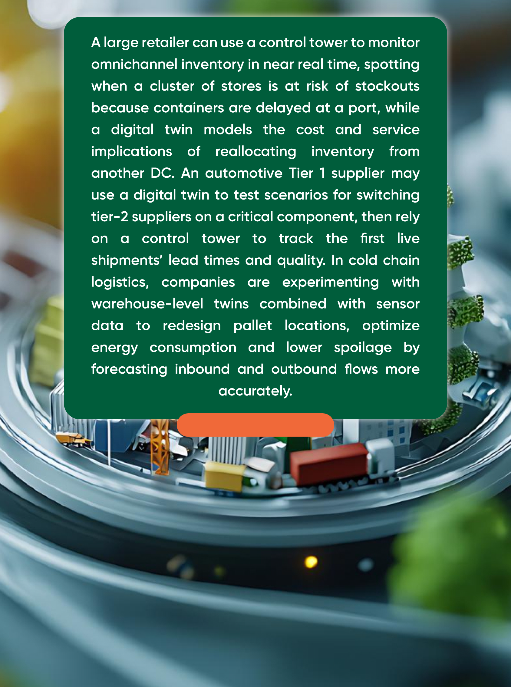 If control towers help organizations see the present more clearly, digital twins help them “rehearse” the future. McKinsey describes digital twins as virtual models fed continuously with real-world data about assets, people and processes, enabling leaders to experiment, forecast and optimize before making changes in the physical world. Recent academic work on digital twins in logistics and supply chain management highlights their potential to support network design, demand planning, inventory allocation and disruption scenario analysis.