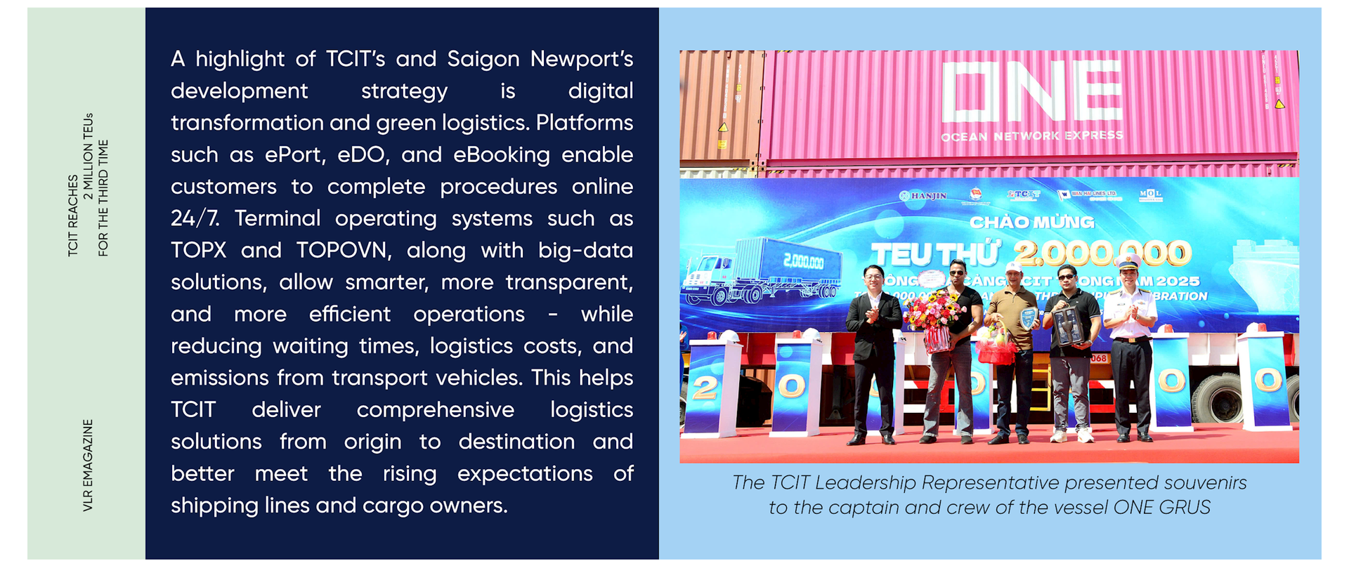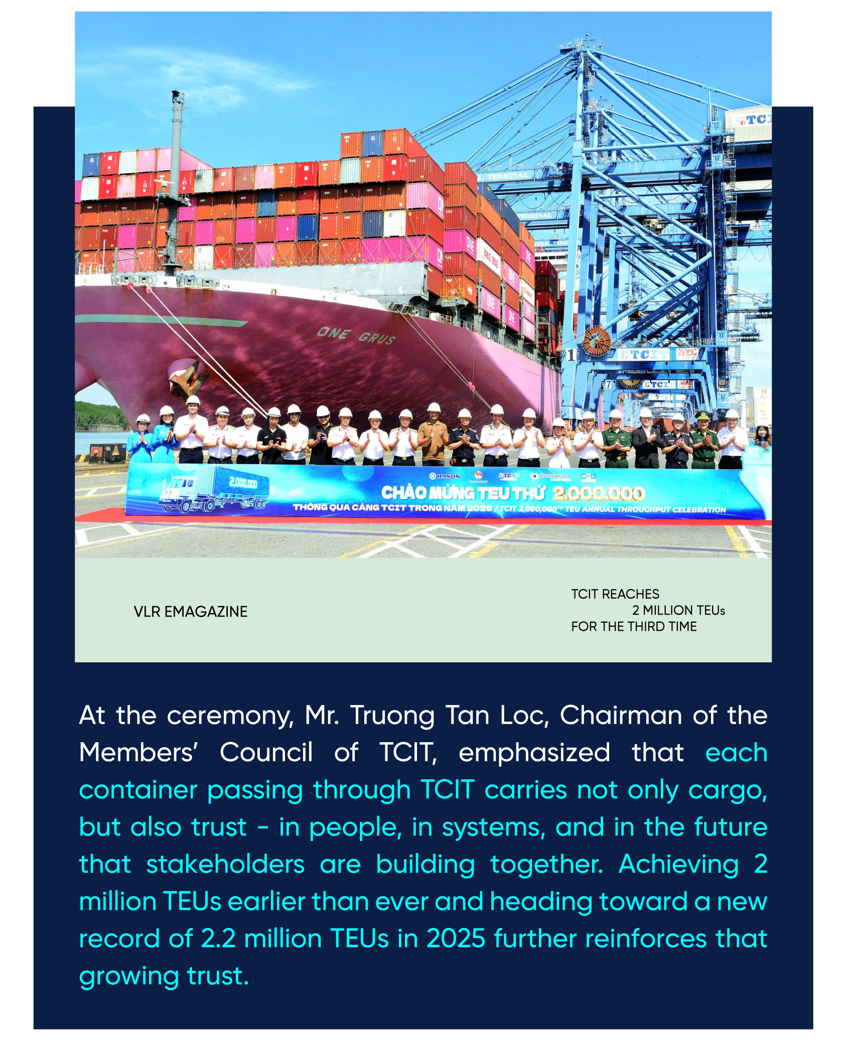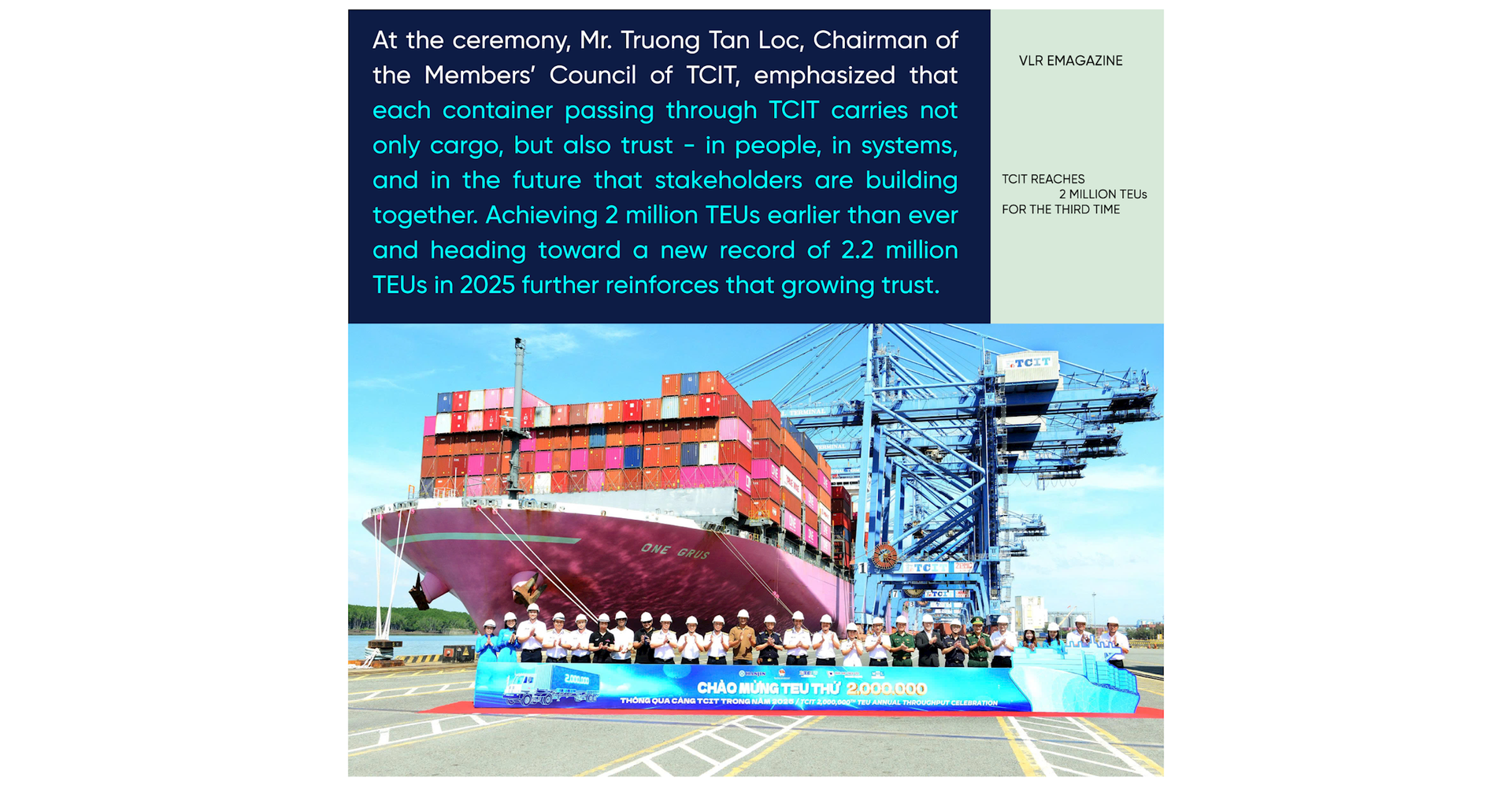 According to TCIT, this is the third time in the terminal’s history that it has surpassed 2 million TEUs in a single year, and each time has been tied to a distinctive story.