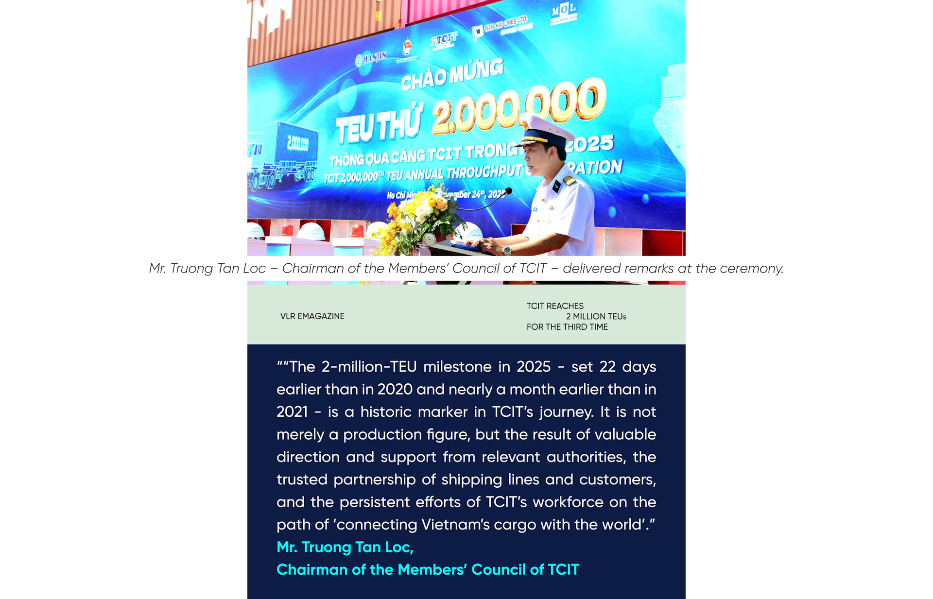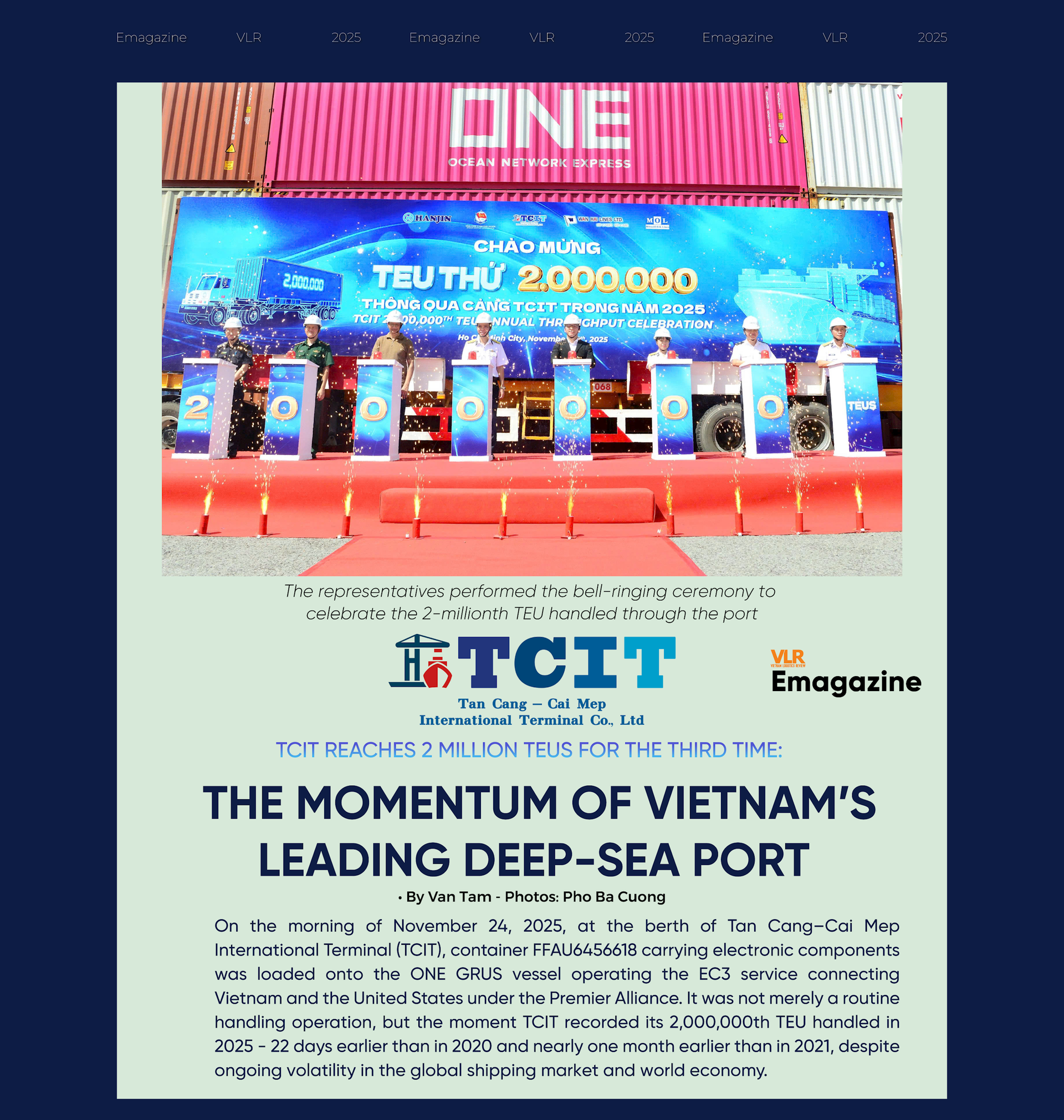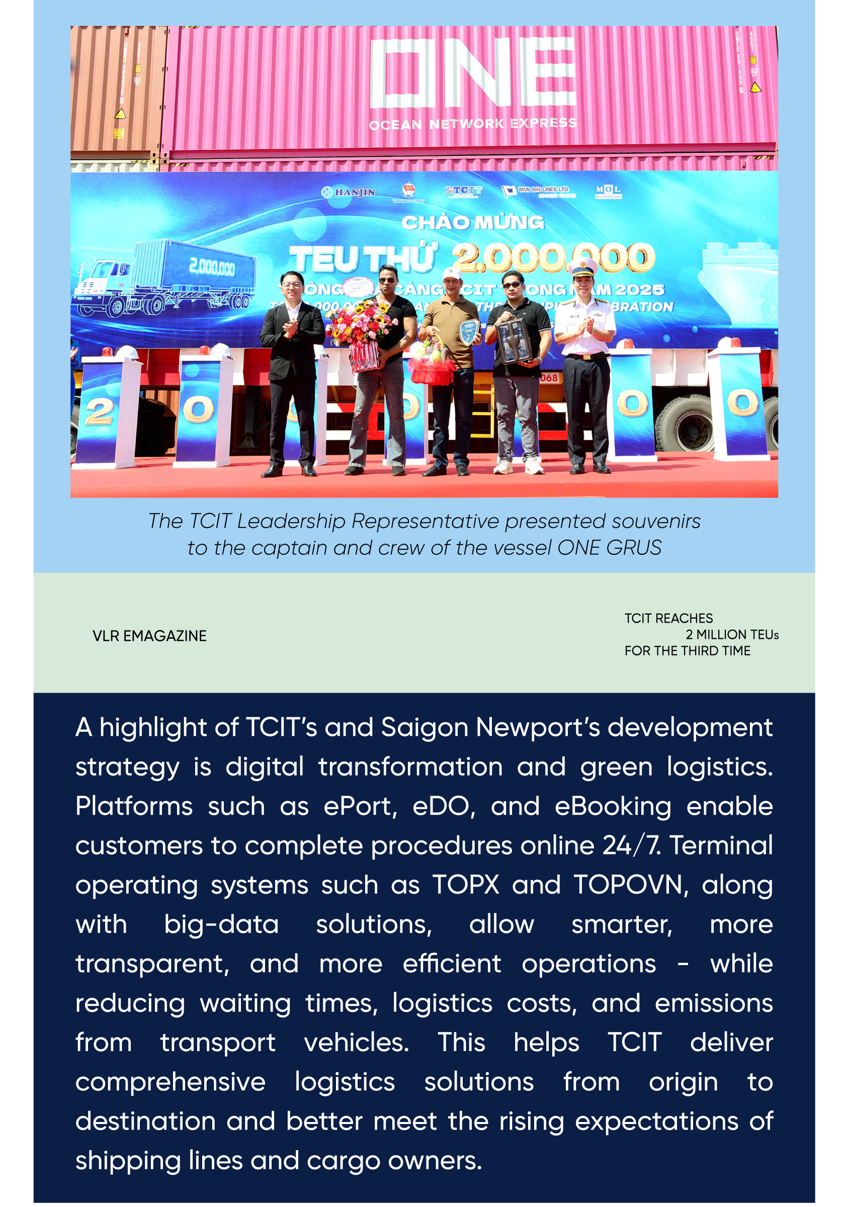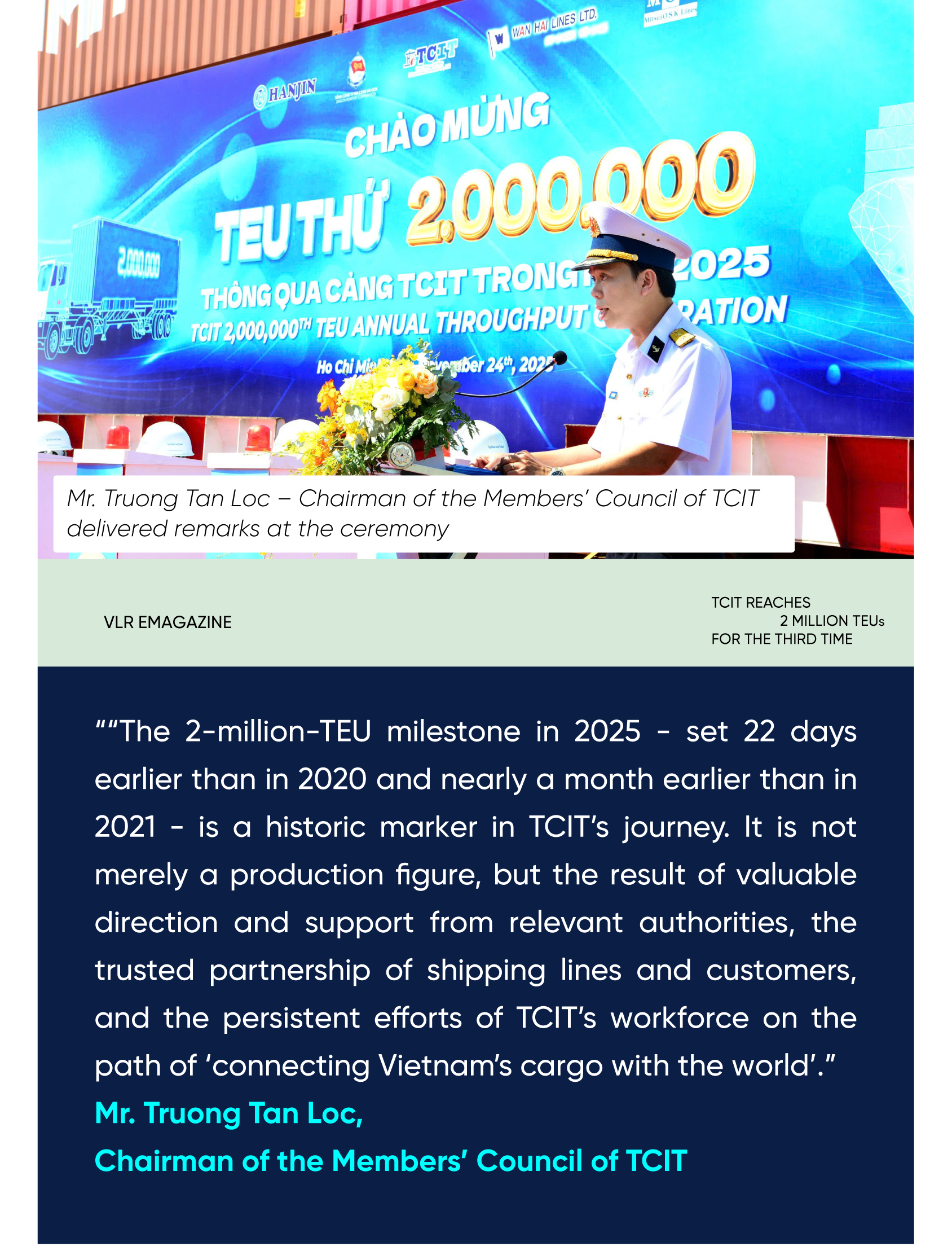 According to TCIT, this is the third time in the terminal’s history that it has surpassed 2 million TEUs in a single year, and each time has been tied to a distinctive story.