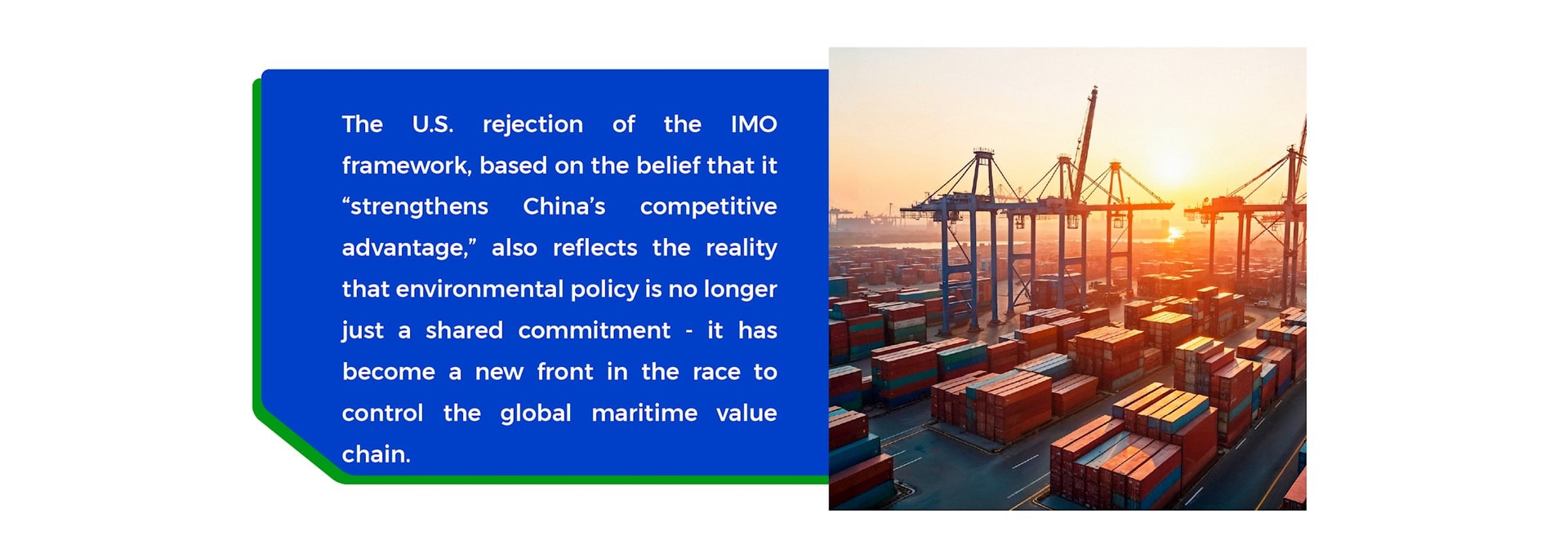 The decision by the U.S. under Donald Trump to reject the IMO’s Net-Zero Emissions Framework immediately sparked concerns across the global shipping industry, especially as the justification given was that the plan would create “a hidden tax on American consumers.” The IMO’s framework aims to gradually reduce and ultimately eliminate greenhouse gas emissions from shipping - a sector responsible for nearly 3% of global emissions. However, the U.S. argued that the forced shift to new, expensive, and globally uncommon fuels such as ammonia, hydrogen, or methanol would impose heavy costs on American consumers while giving an unfair advantage to China, which controls much of the green fuel supply chain and next-generation shipbuilding.