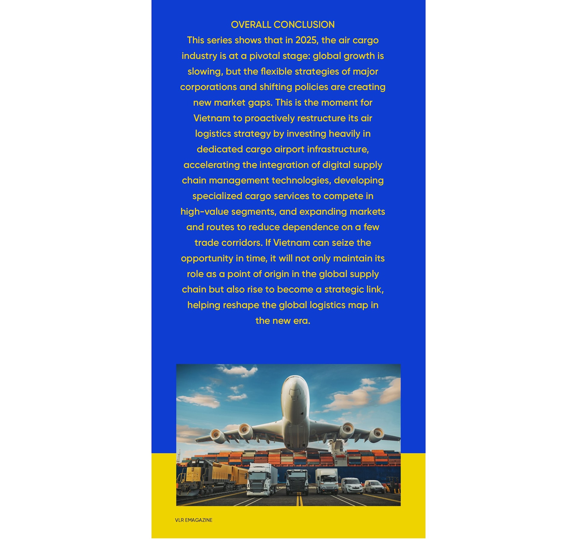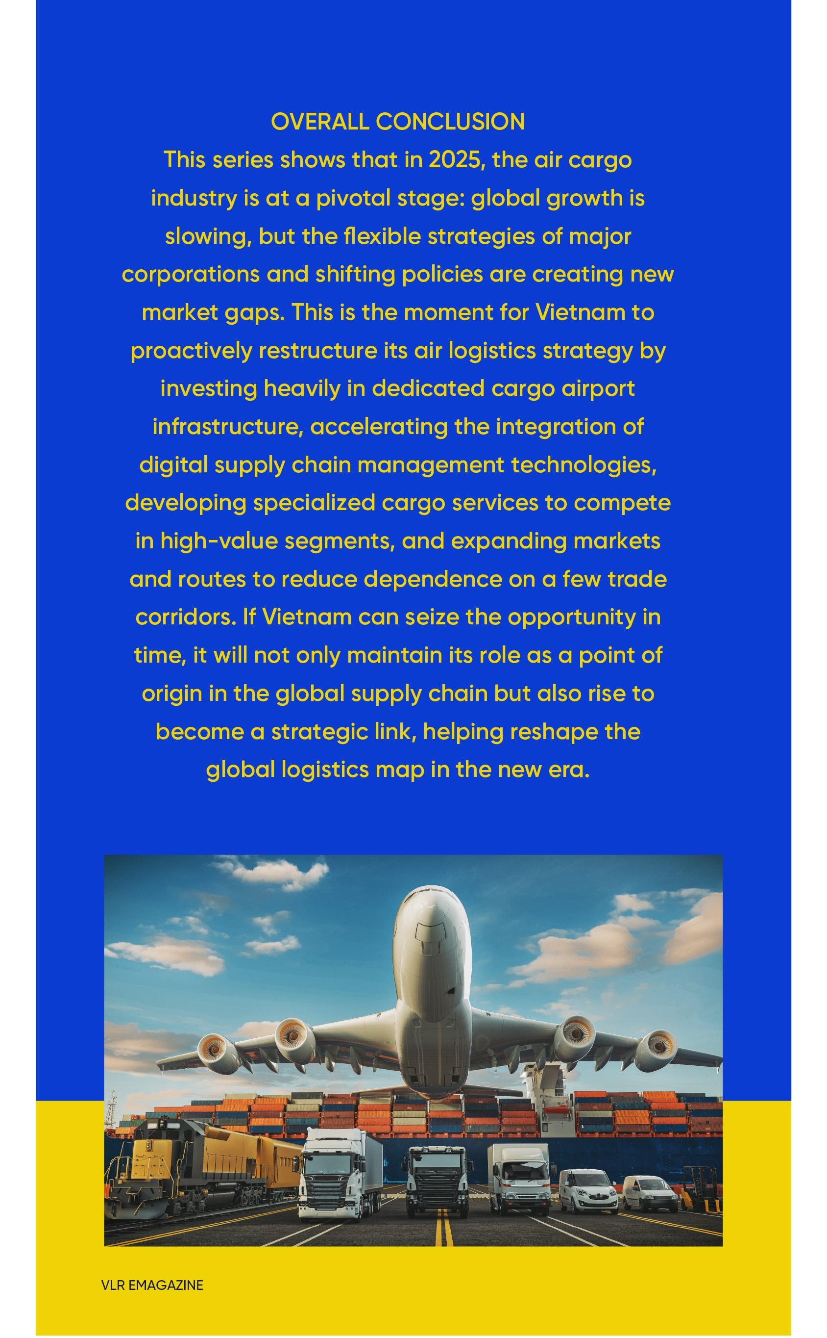 The lesson for Vietnam is clear: it cannot rely solely on a handful of major export markets or core transport corridors. It must diversify both markets and transport modes while upgrading air logistics infrastructure to become a more attractive partner for international carriers. In particular, accelerating the digitization of customs processes and standardizing documentation can help Vietnamese goods shorten handling times and improve competitiveness in an increasingly slot-constrained environment.