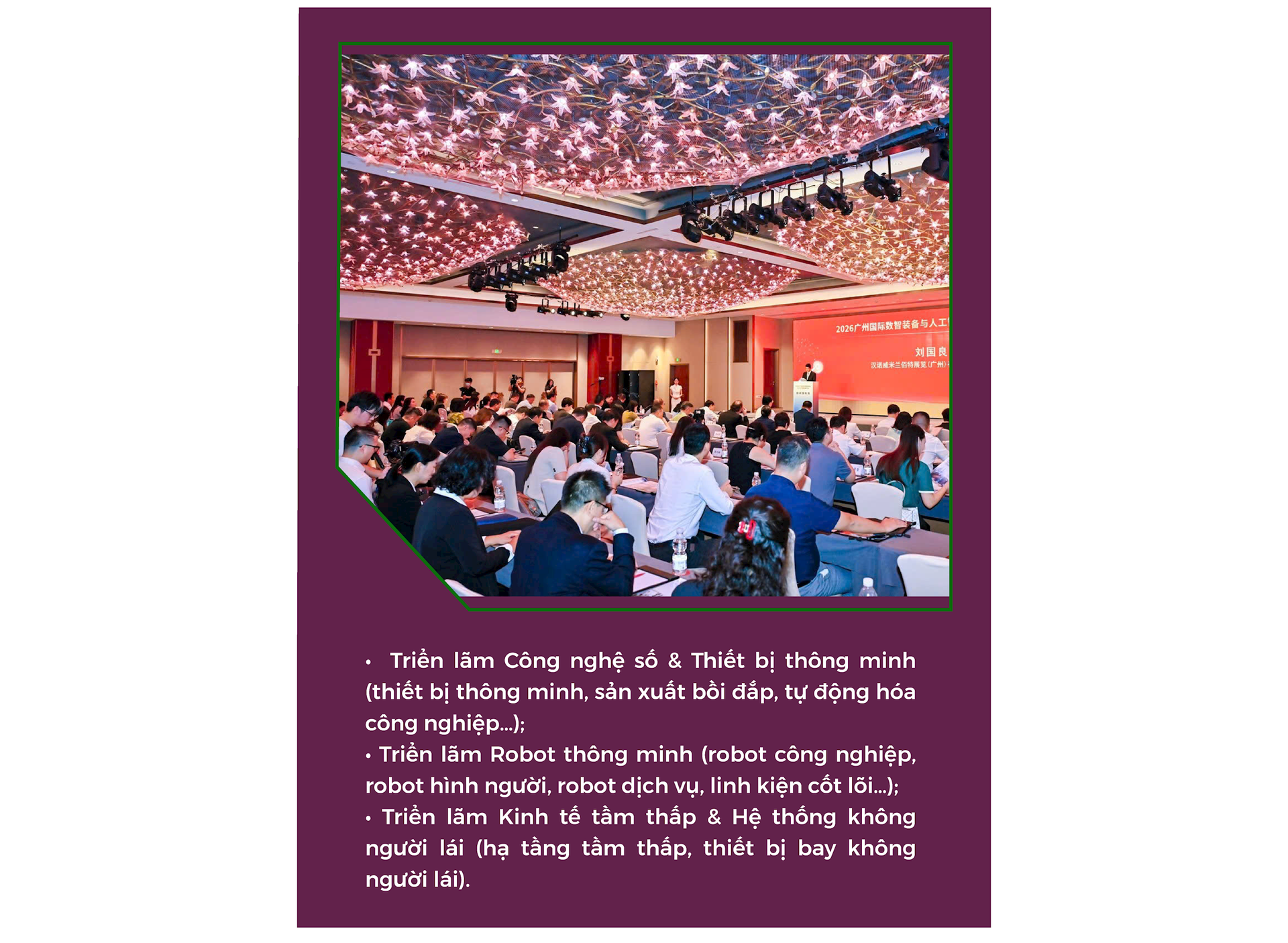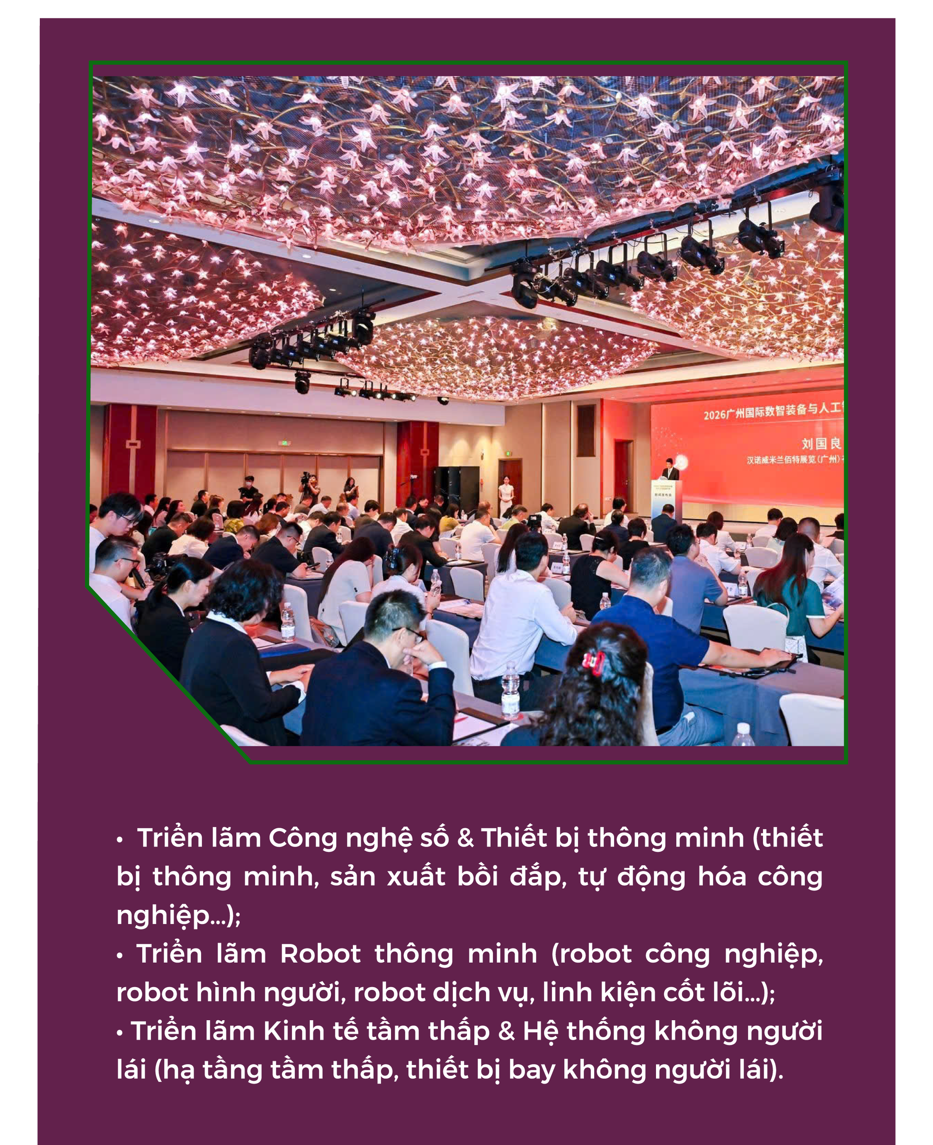 Năm 2026, Ban Tổ chức chú trọng kết nối trong nước với Hiệp hội Robot tỉnh Quảng Đông, các doanh nghiệp đầu ngành như Tập đoàn Công nghiệp Quảng Châu, Tập đoàn Công nghệ Số Quảng Châu…, tập trung những mảng mũi nhọn: năng lượng mới, linh kiện thiết bị thông minh, IoT công nghiệp, robot thông minh, hạ tầng số, kinh tế tầm thấp, ứng dụng AI. Đồng thời, triển lãm phối hợp với đại sứ quán và phòng thương mại nước ngoài tại Trung Quốc, mời đoàn doanh nghiệp từ Ả Rập Xê Út, Qatar, Indonesia, Malaysia (khối RCEP), Brazil, Mexico… nhằm tạo hiệu ứng “hội tụ nội địa – lan tỏa quốc tế”.