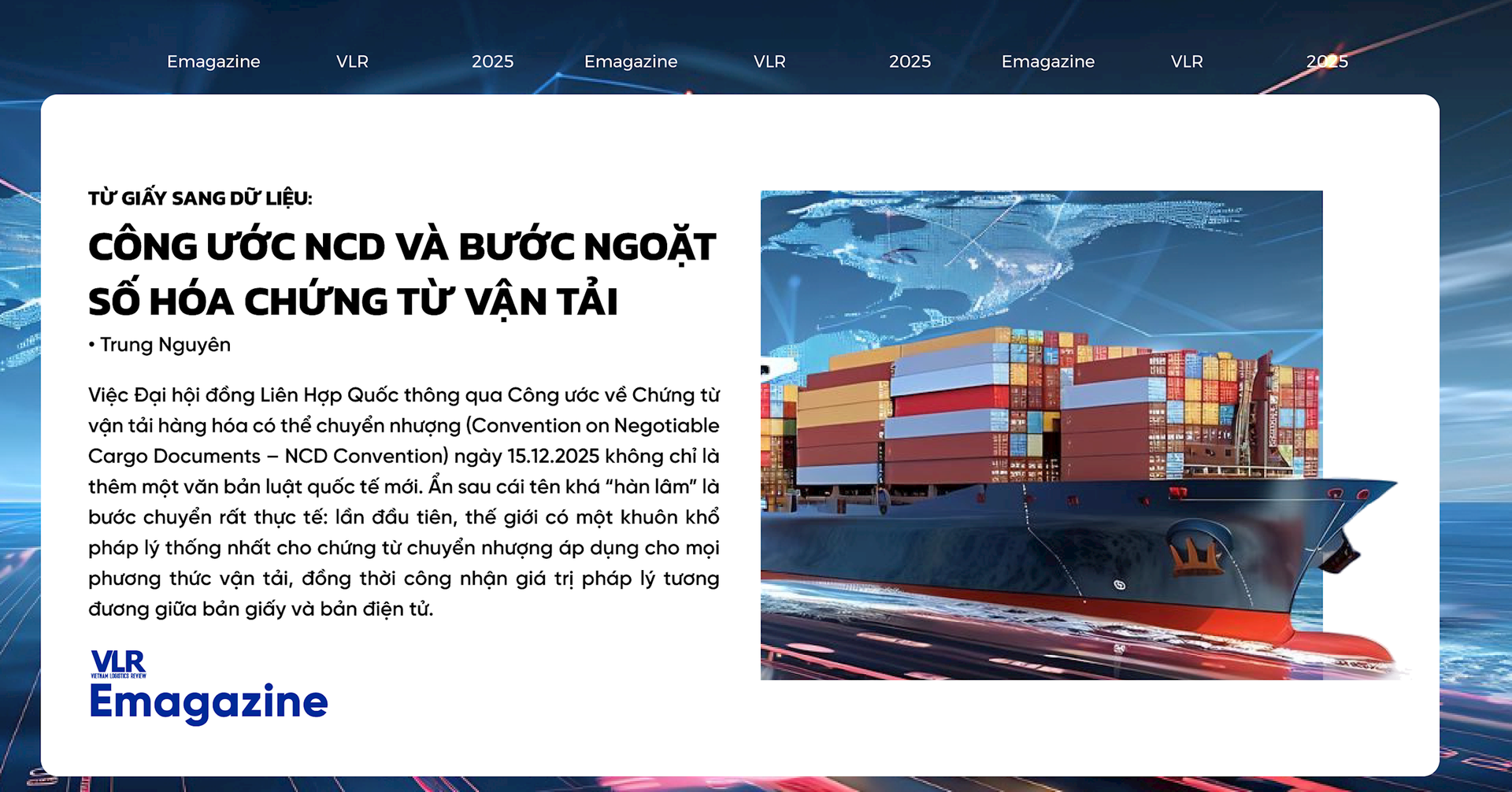 Sau eBL, eAWB và hàng loạt sáng kiến trade digitalization khác, Công ước NCD cho thấy bức tranh đang dần hoàn chỉnh: không chỉ riêng vận tải biển, mà mọi phương thức vận tải đều có cơ hội bước vào kỷ nguyên chứng từ điện tử có thể chuyển nhượng. Với các doanh nghiệp và tổ chức tài chính, NCD mở thêm một đường băng mới để tăng tốc: rút ngắn thời gian giao dịch, giảm rủi ro chứng từ, tối ưu dòng tiền nhờ khả năng bán lại hàng hoặc thế chấp hàng ngay khi đang di chuyển. Với các chính phủ, NCD là lời nhắc nhở rằng cuộc chơi thương mại số đang được “nâng level” từ việc chỉ số hóa quy trình sang số hóa cả quyền sở hữu.