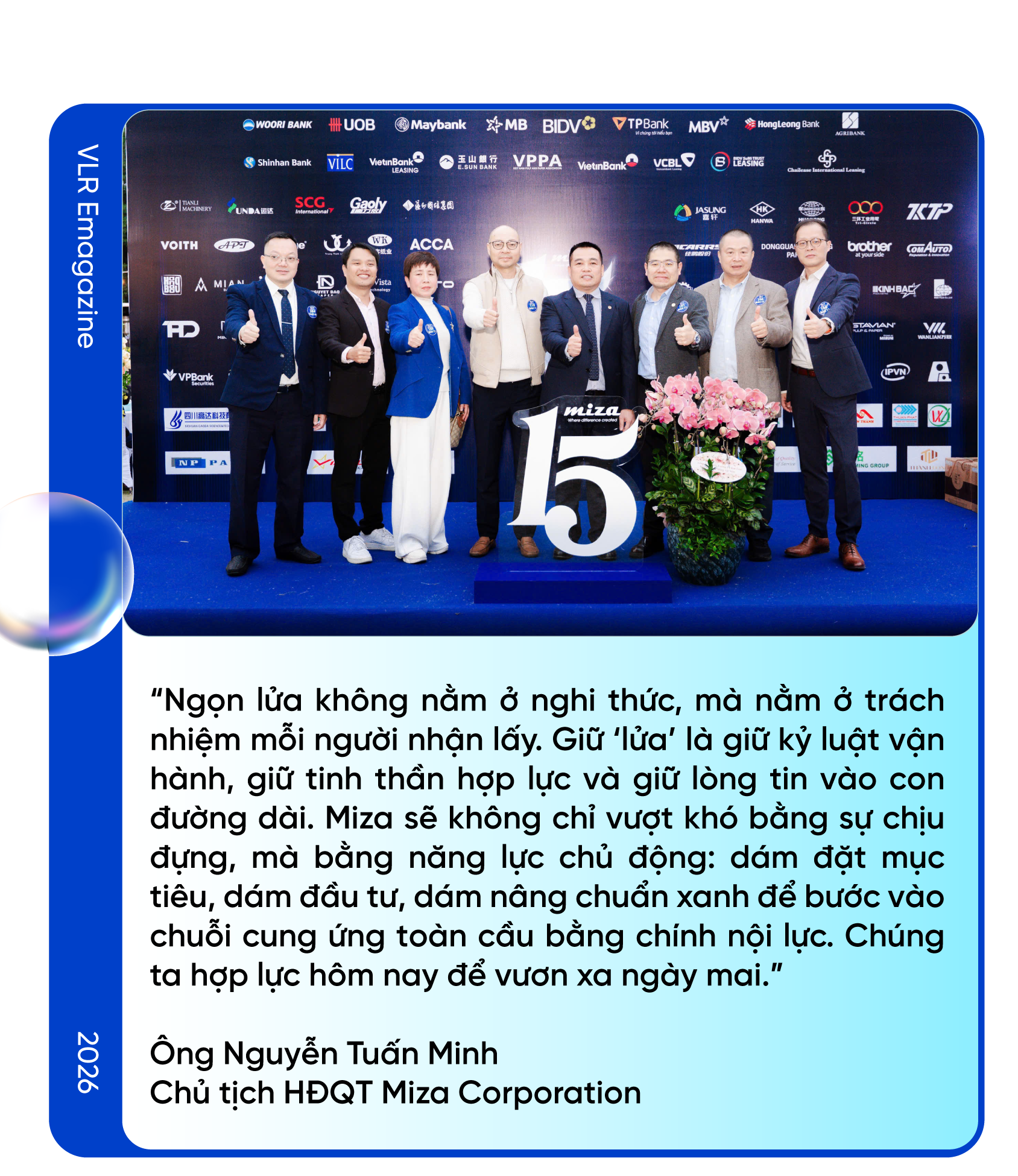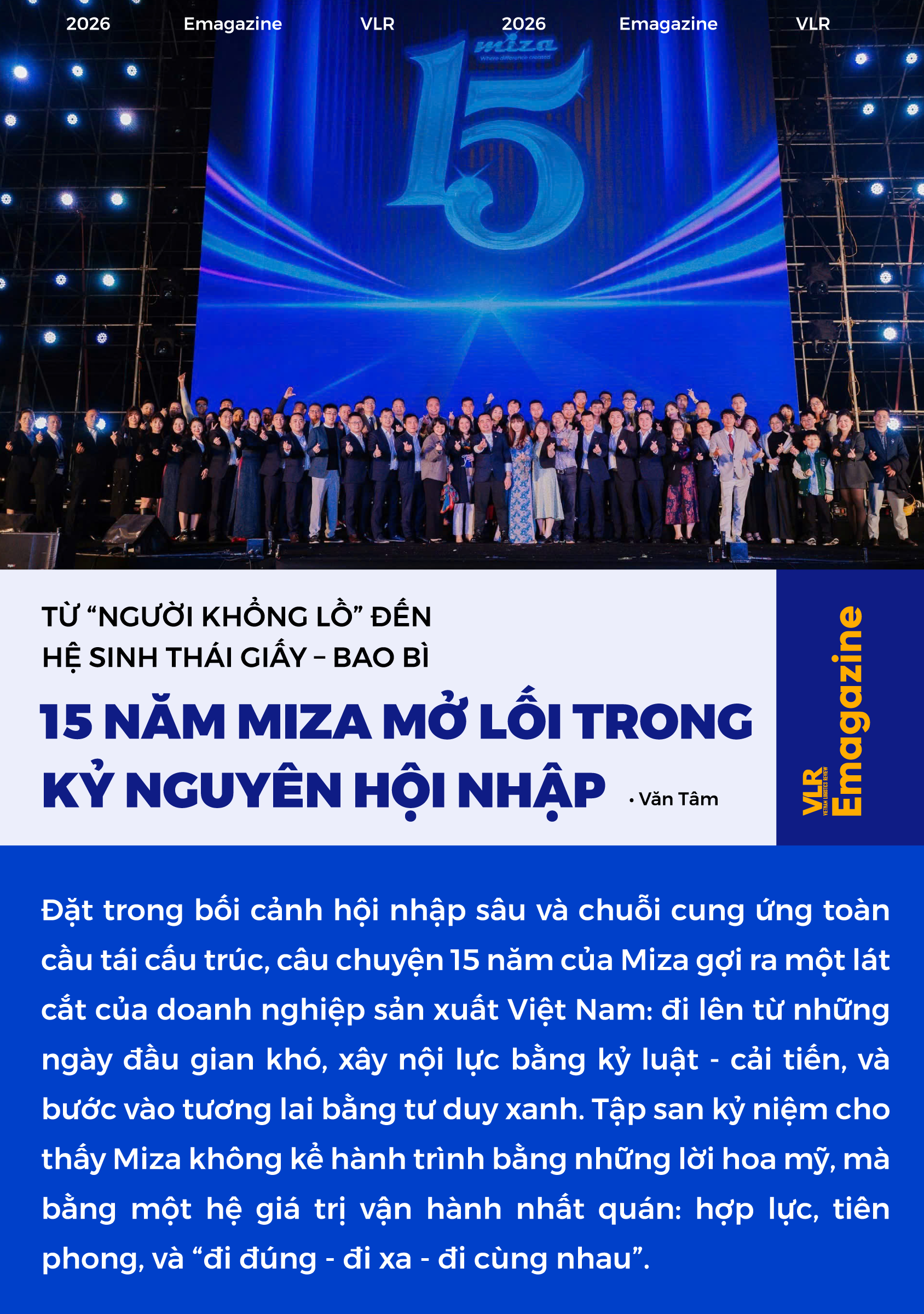 Nếu “Người khổng lồ Miza” là bản kể về quá khứ và bản lĩnh, thì những hình ảnh, thông điệp đi kèm lại hướng mạnh về tương lai. Tập san nhấn mạnh: 15 năm là một hành trình không trải hoa hồng, nhưng sau tất cả Miza trưởng thành để trở thành phiên bản “Người khổng lồ” vững vàng và sẵn sàng cho chặng đường dài.