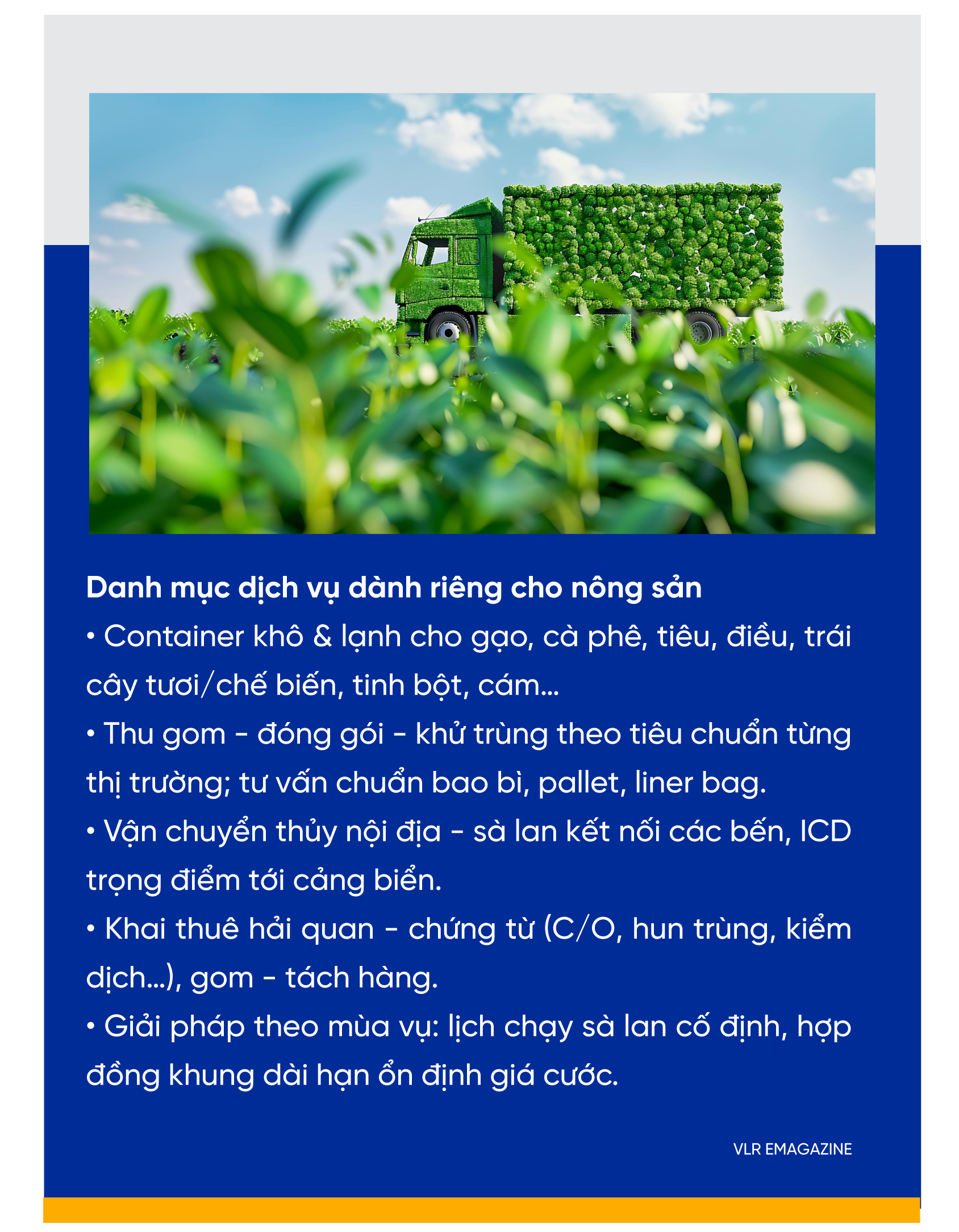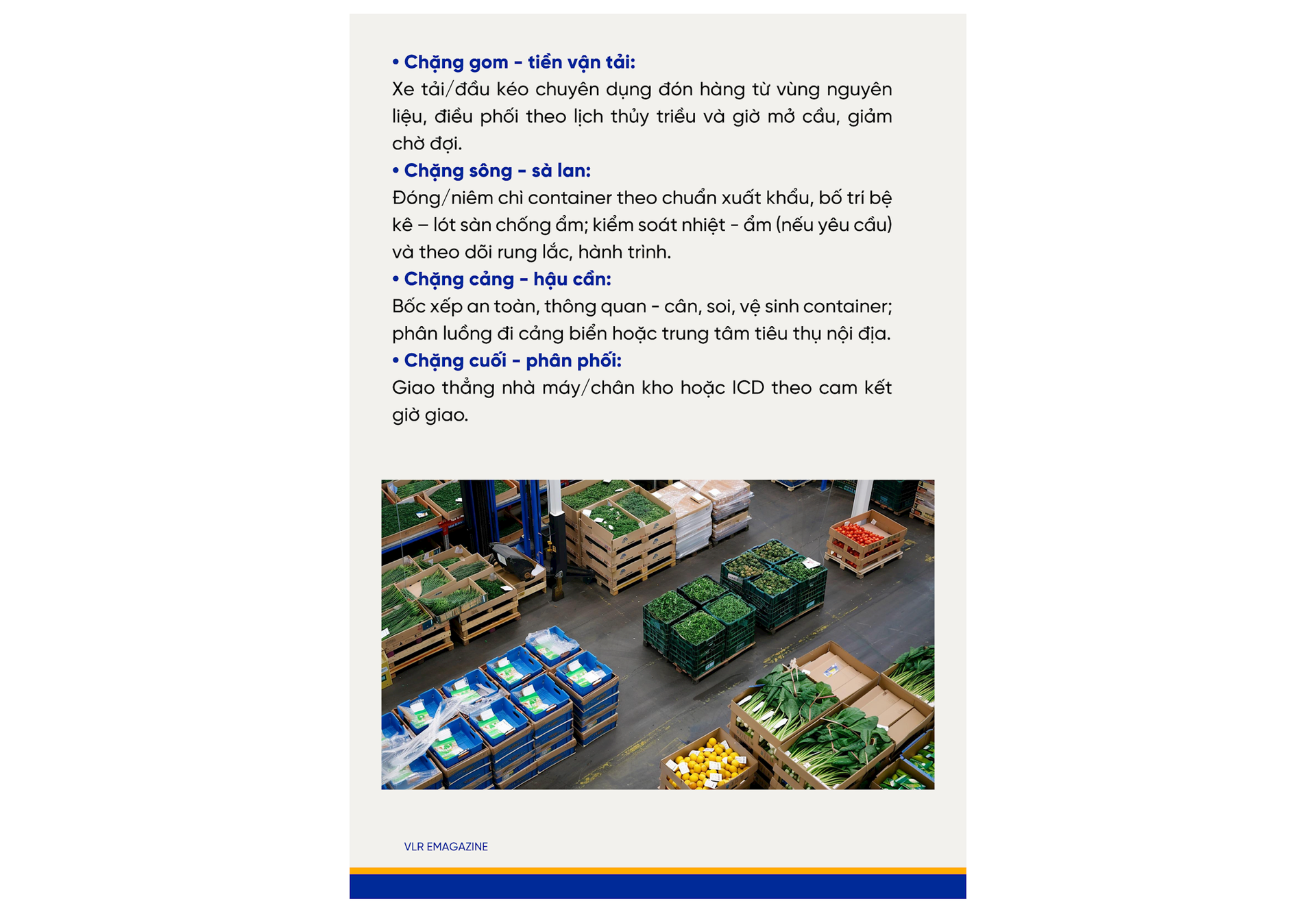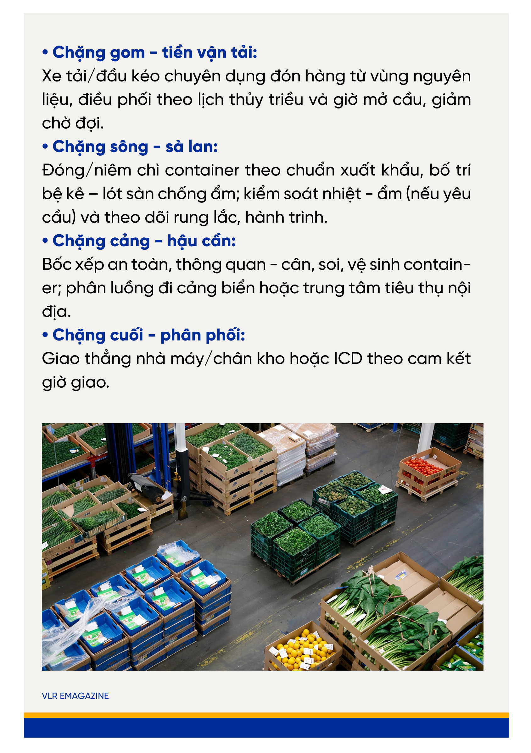 An toàn - tuân thủ: tiêu chuẩn vệ sinh container; quy trình niêm chì - bàn giao rõ ràng.